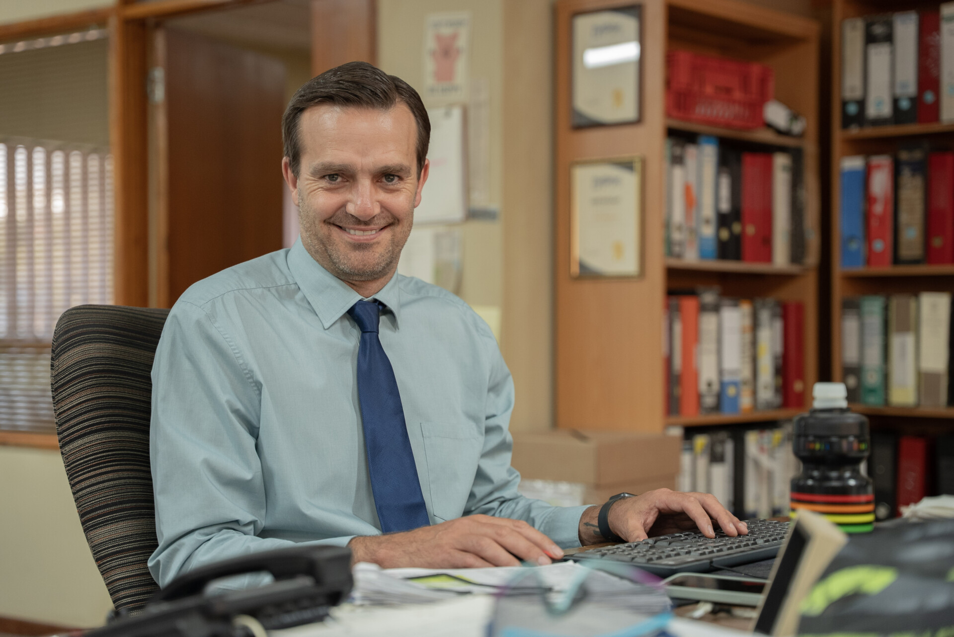 Albert Pretorius as die kantoorbestuurder, Flip.