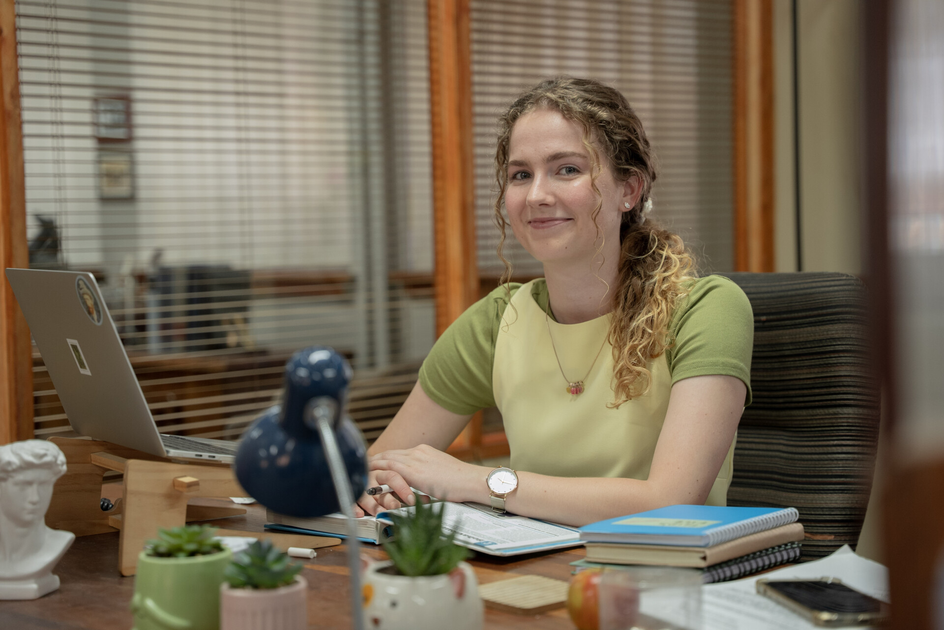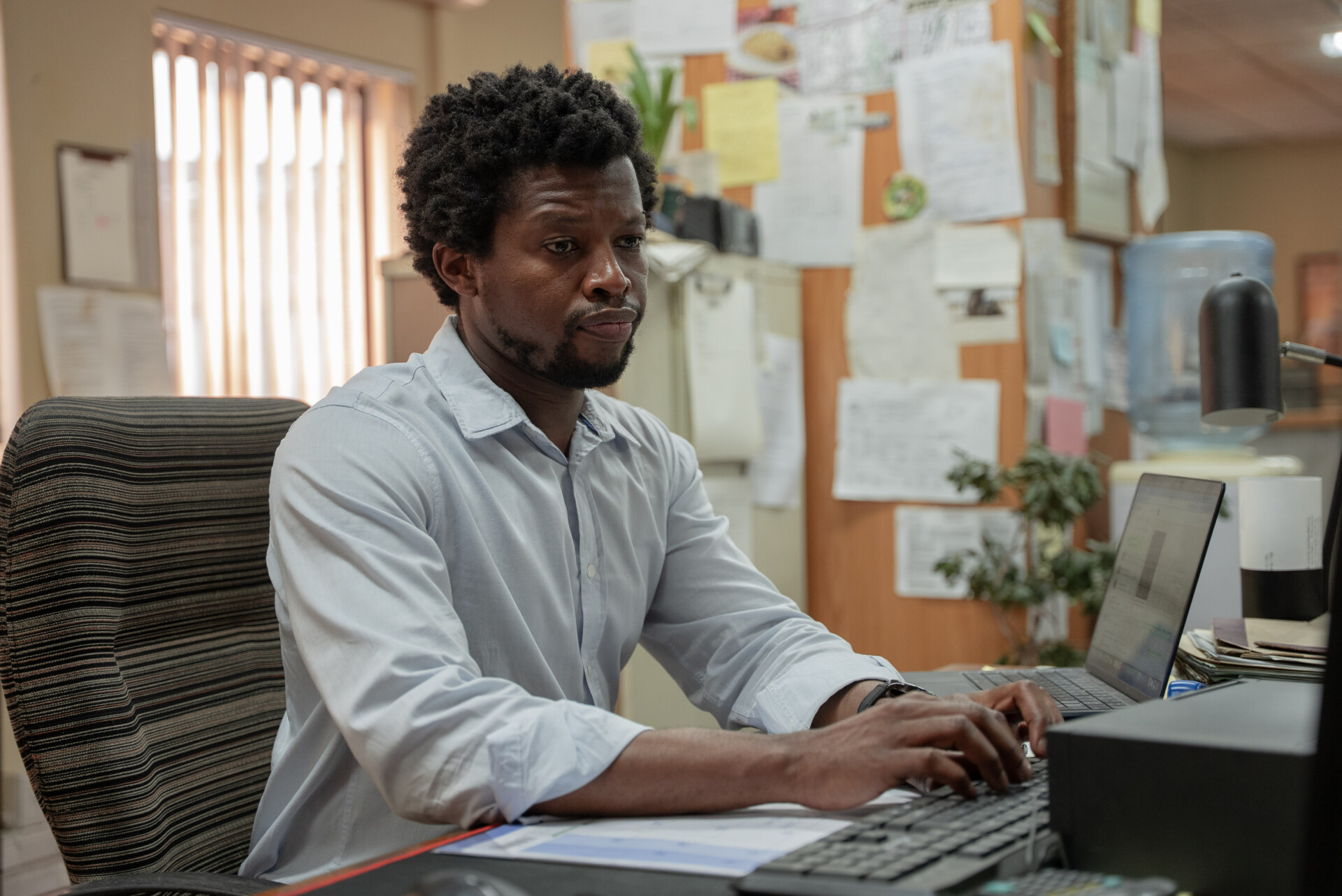 Ja. Die kameras kon hulle enige oomblik vang. So, hulle moes in karakter bly. Dit het ongelooflik baie bygedra daartoe om dit soos ’n regte kantoor te laat voel. Hulle het baie tyd gehad. Ilse [Oppelt] het haarself leer teken, en op die laaste skietdag het sy vir elke akteur en spanlid ’n tekening gegee wat sy gemaak het.