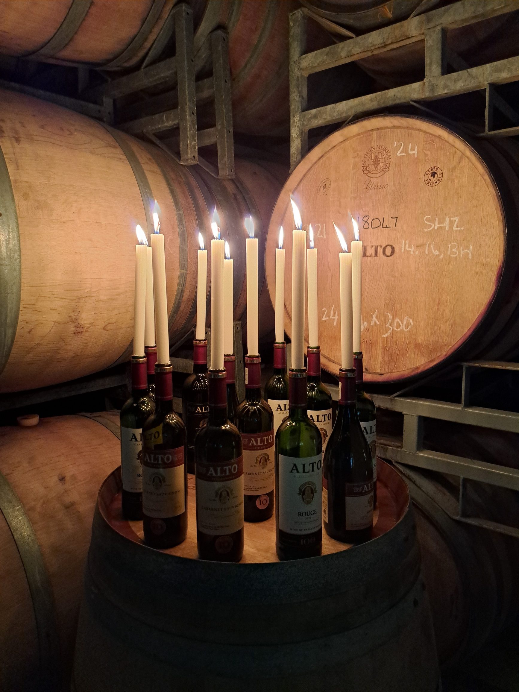 Eers het almal oor vonkelwyn en peuselhappies oor die vallei uitgekyk wat tot aan die voete van Tafelberg strek, voor die proe in die 102-jaar-oue wynkelder by kerslig aangebied is.