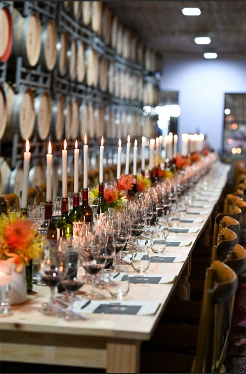 - Een lang tafel vir al die gaste wat vyf verskillende oesjare Alto Rouge proe.