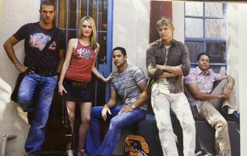 Ivan, Diaan, Nico Pangio, Henré Pretorius en Elton Landrew in ’n publisiteitsfoto vir die toneelstuk Pleiboyz wat in 2006 by die KKNK opgevoer is. (Foto: Verskaf)