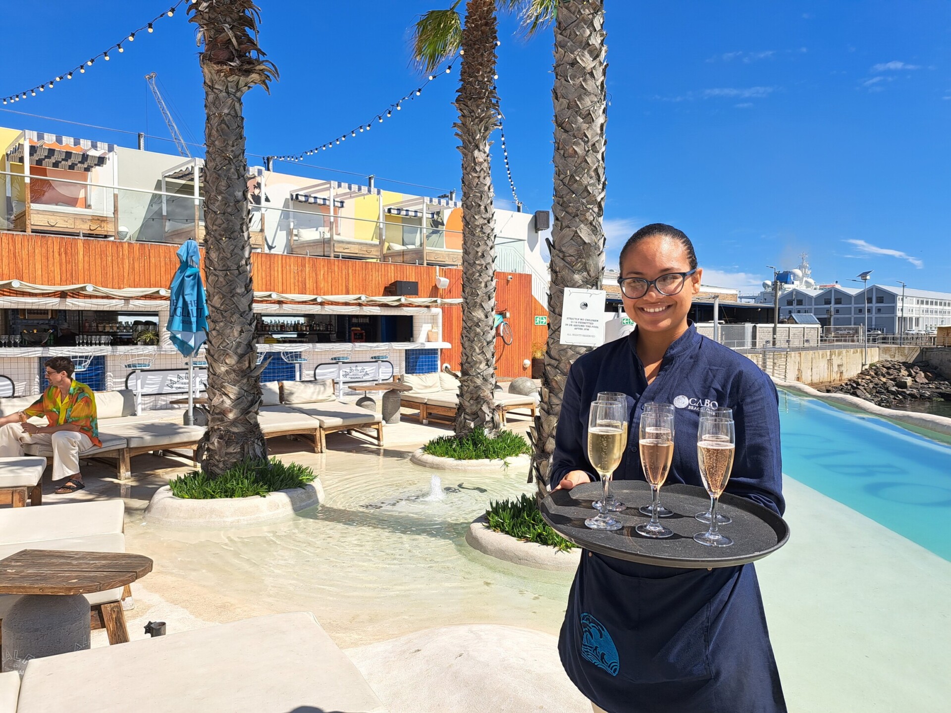Die besige Waterfront wink na links, maar vir ’n paar uur kan jy jou verbeel jy is iewers in Ibiza, met musiek wat traag om jou lui lyf dartel en seilbote wat rustig verbyvaar.