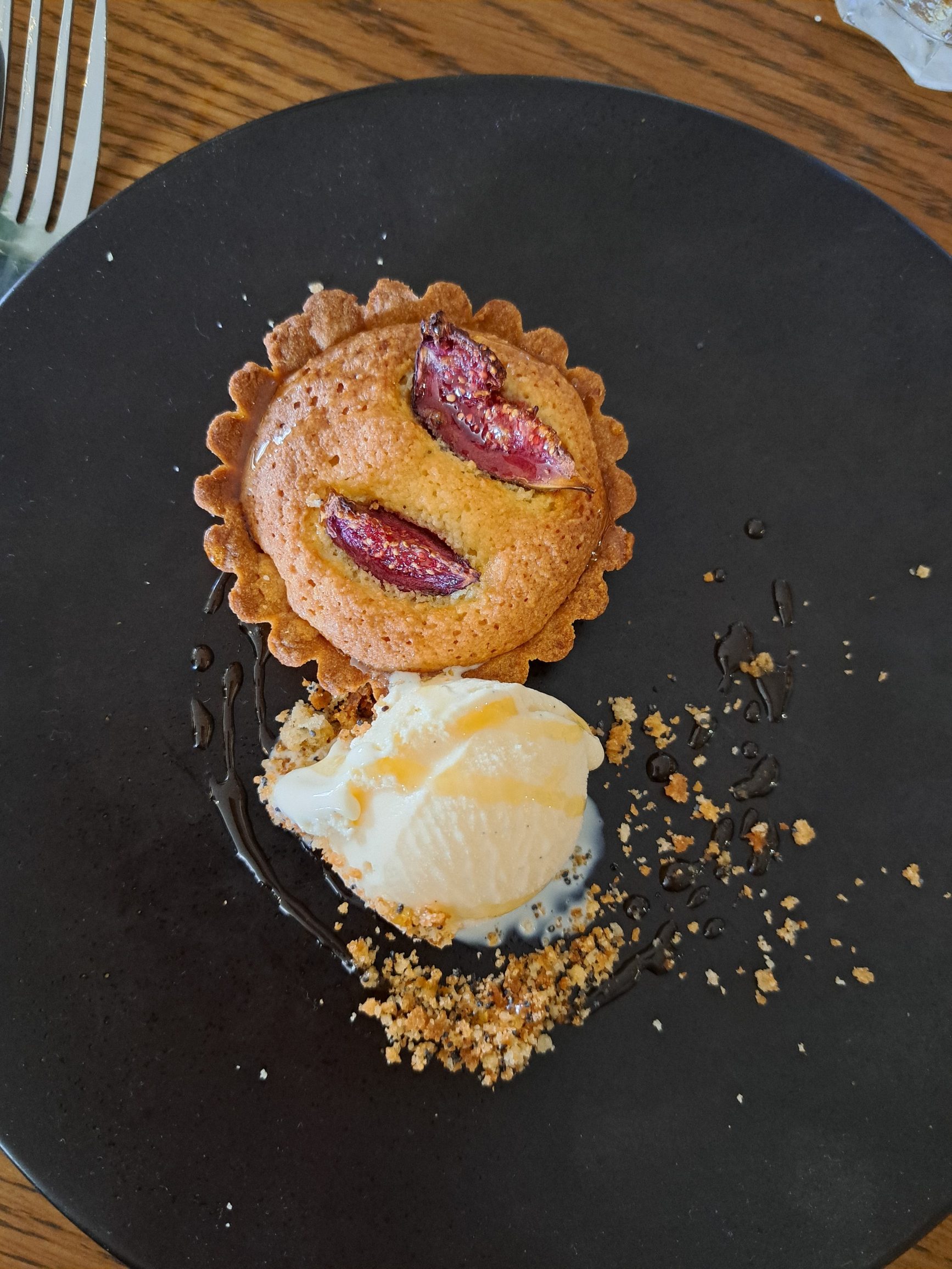 - As jy en jou metgesel een van elke nagereg bestel, kan jy albei proe. Die vye-en-heuningtert met Bourbonroomys was ’n gewilde keuse.