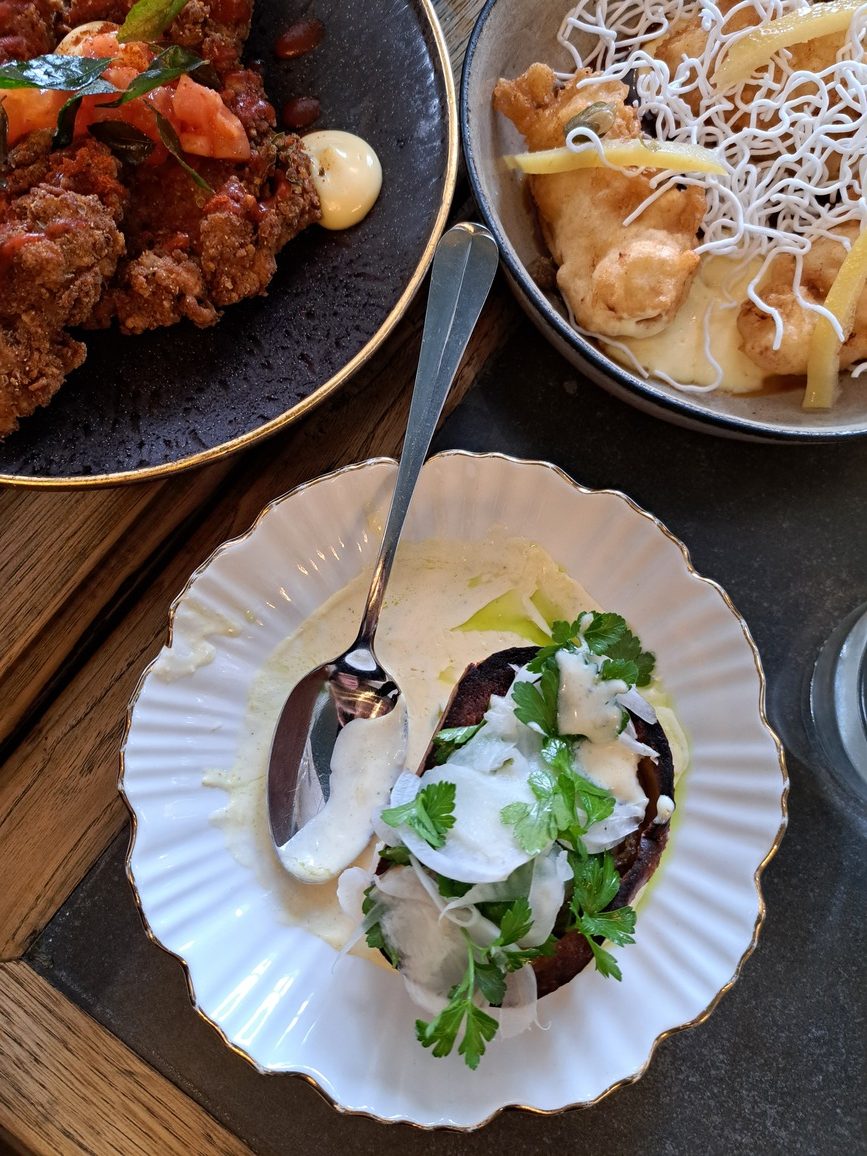 - Van die heerlike disse wat sjef Amori Burger van Upper Union Restaurant bedien het om die Chardonnays te komplimenteer.