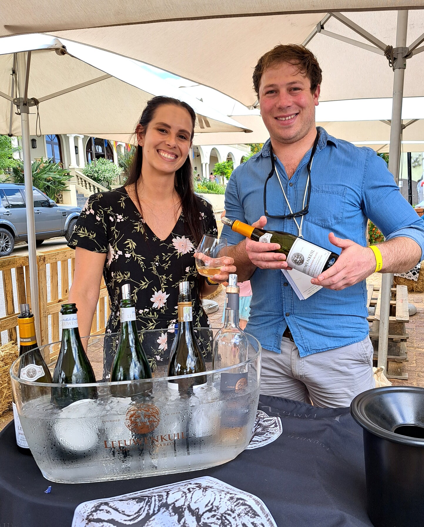 - Madré van der Walt en Gerhard Augustyn van Leeuwenkuil Family Vineyards met hul Heritage Chenin Blanc 2014.