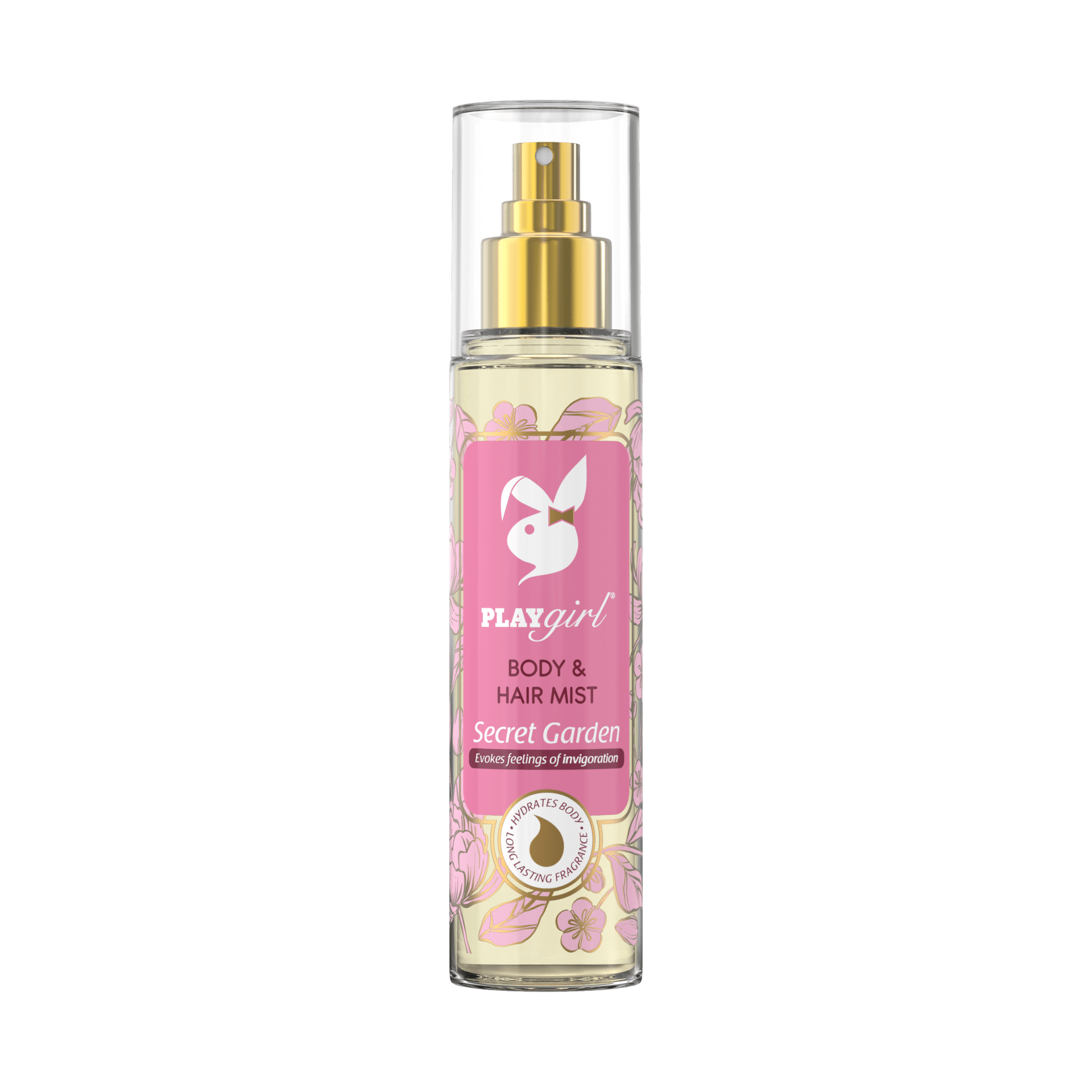 Playgirl Secret Garden Body & Hair Mist meng wit blomme, rooi vrugte en karamel. Dit bring sprankelende feestelike energie en ’n opgewekte vakansiegevoel mee.