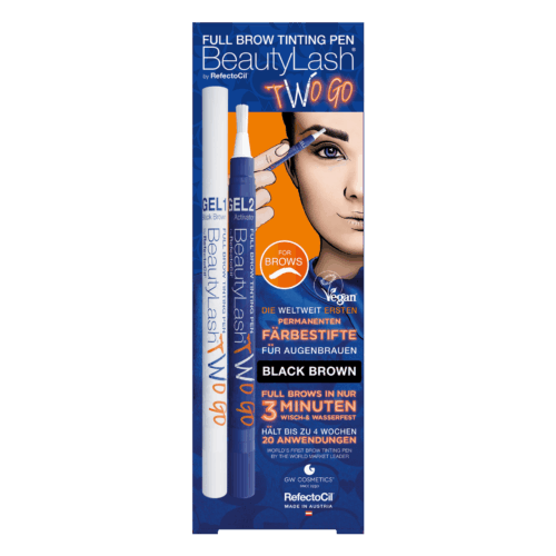 Ervaar die wêreld se eerste permanente wenkbrou-kleurpenne. BeautyLash® deur RefectoCil® Volle Wenkbrou-kleurpenne Two Go is ’n tweestapstelsel wat ’n intense volle wenkbroueffek in slegs 3 minute lewer. Dit is vlekbestand, waterdig en langdurig. Daar is twee skakerings: natuurlike bruin en swart bruin. En minstens 20 presiese, maklike toepassings met die geïntegreerde kwas.