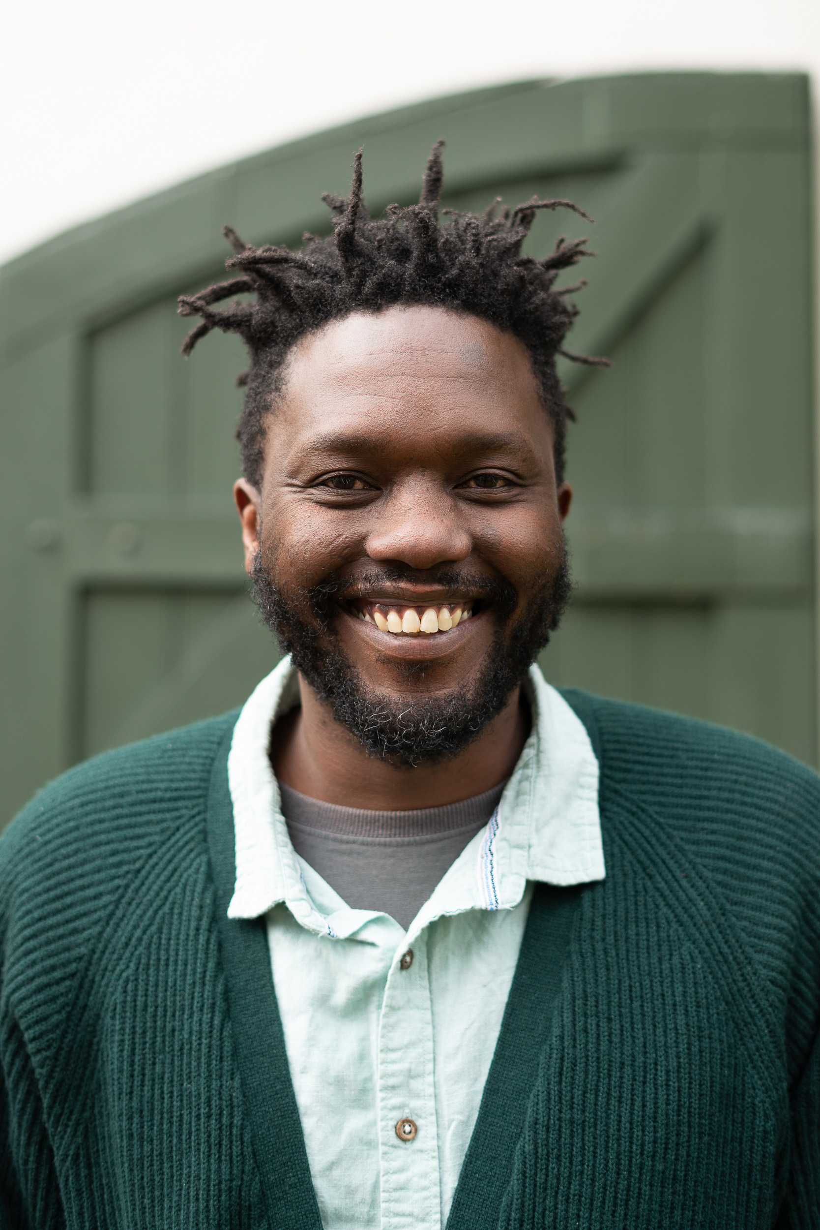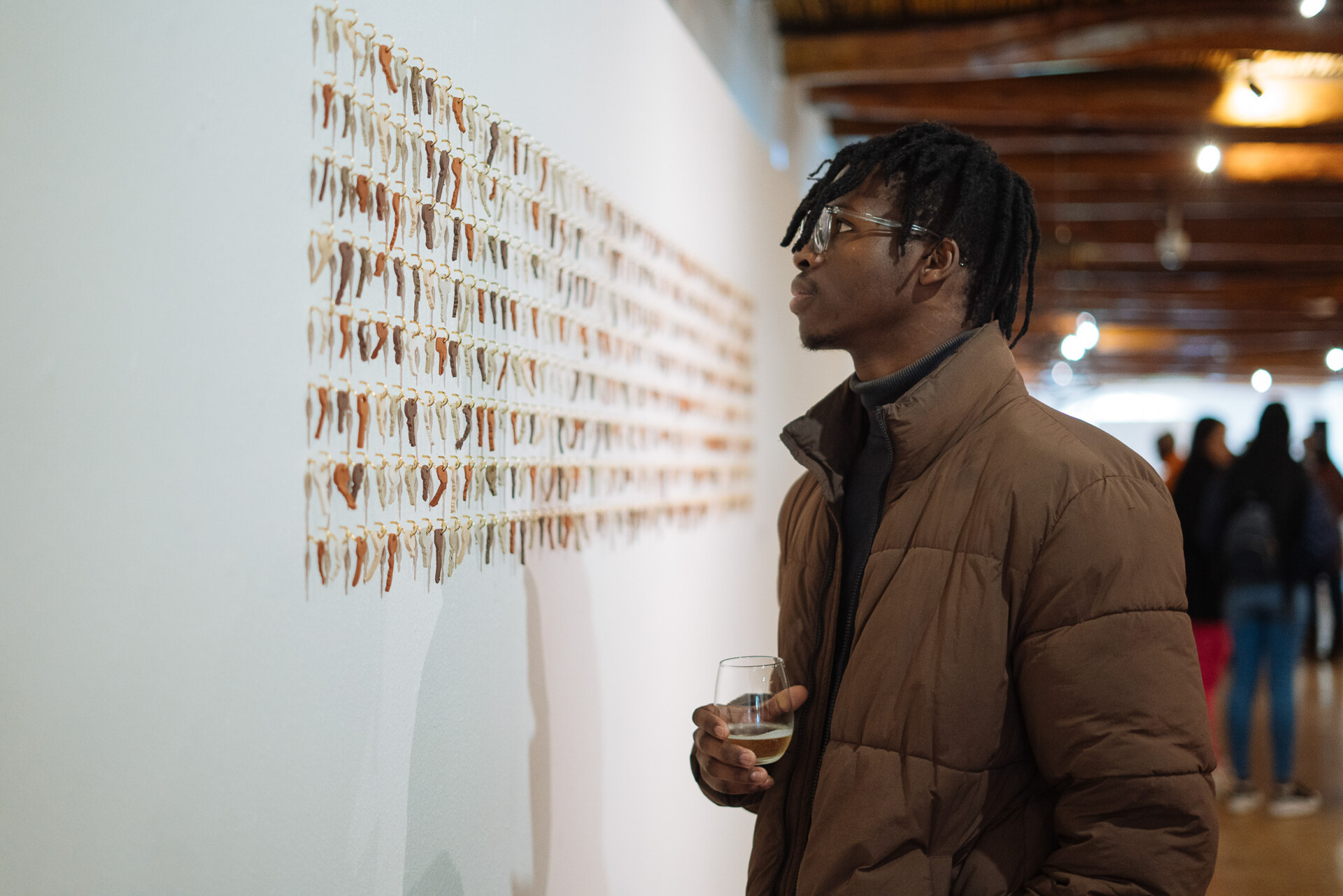 - Die kunstenaar Ludwe Mgolombane, wie se werke ook deel van die uitstalling is.