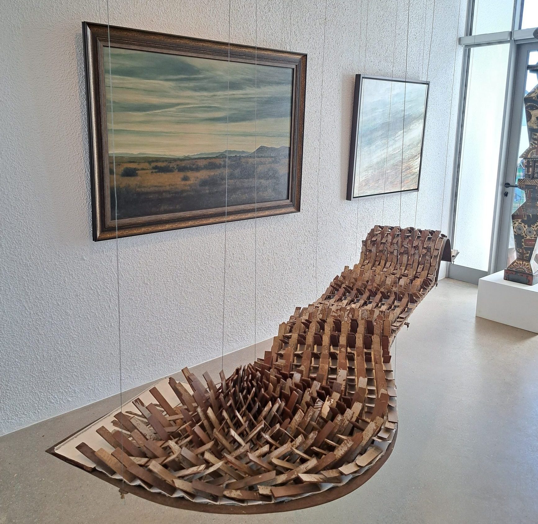 - Die plaaslike kunstenaar, Wiehan de Jager, het met Clayton Sutherland saamgespan in hul uitstalling op die B-roete.