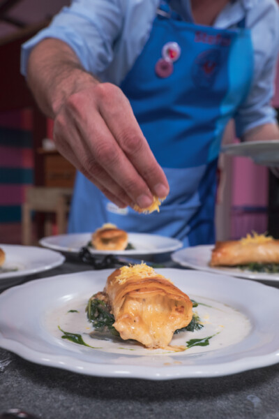 Vir die eerste uitdaging het die twee Stemmets ’n dis voorberei wat hulle die “Stemmets se seekombers” noem – filodeeg met ’n bietjie kabeljou en ’n witsous, vars pietersielie en nog ’n paar ander lekker vars geure daarby.