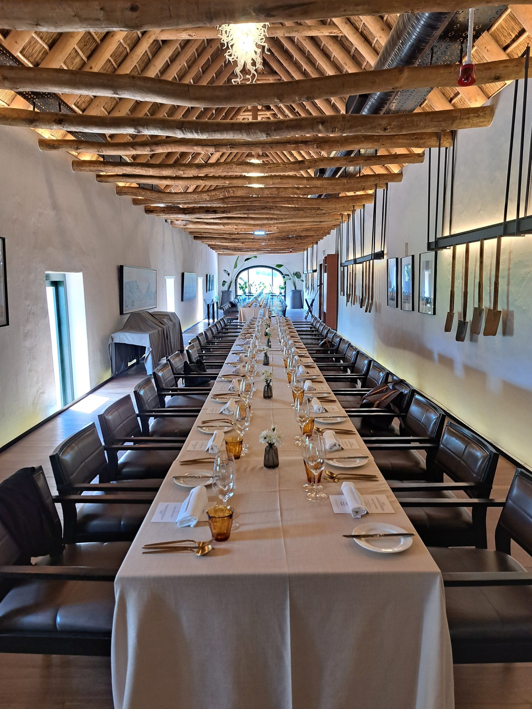 - Die tafels is gedek vir die feesmaal by Bertus Basson en Drikus Brink se Clara’s Barn op die historiese Vergenoegd Löw wynlandgoed buite Stellenbosch.