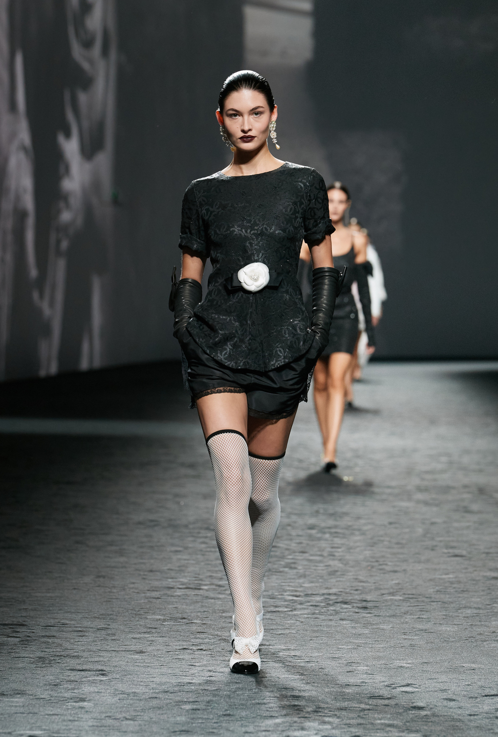 Chanel het handskoene gewys saam met visnetkouse wat tot bo die bobeen kom en lae hakke met ’n vierkantige boog en hul kenteken daarop. Die afskouer-mou is iets wat by menige modehuis voorgekom het.