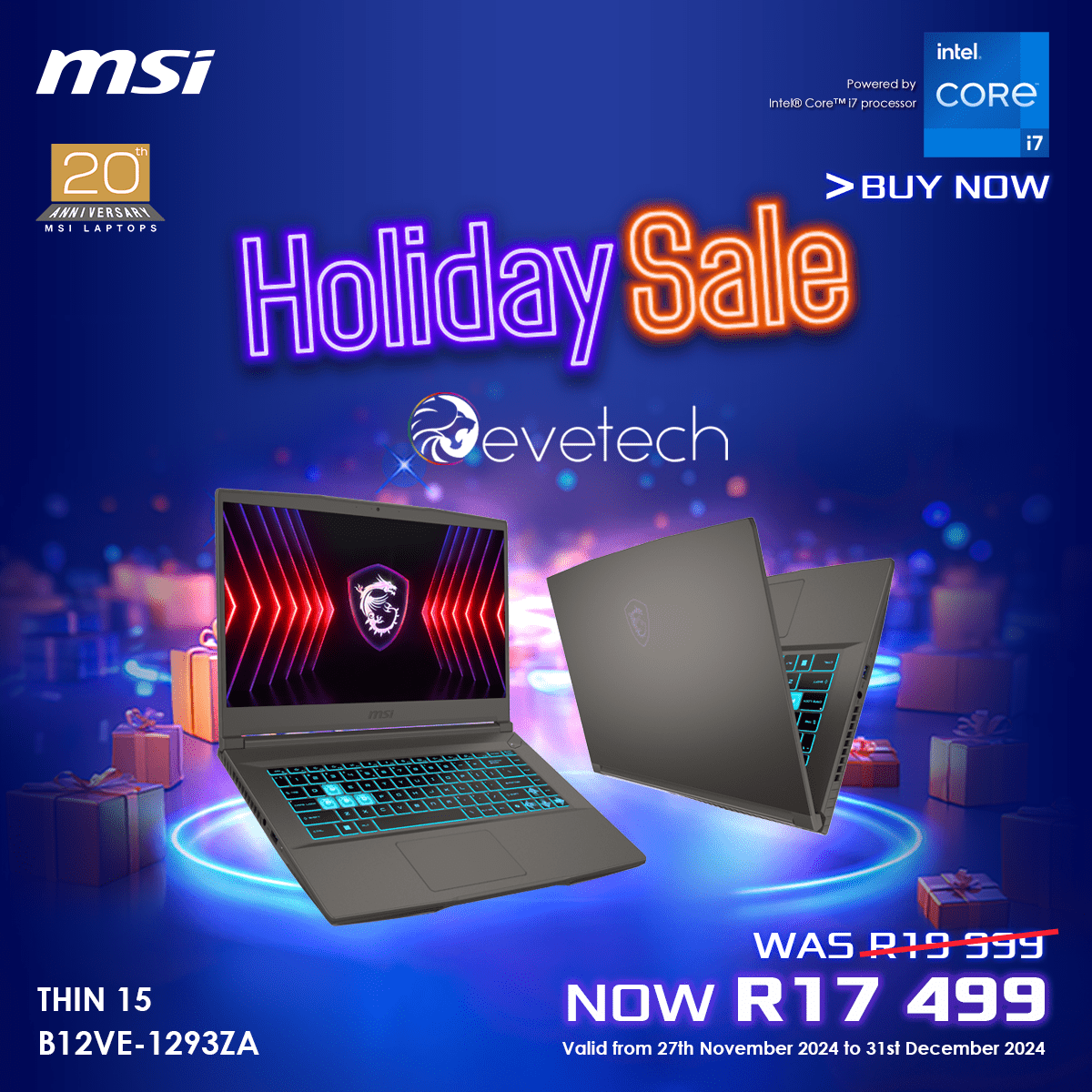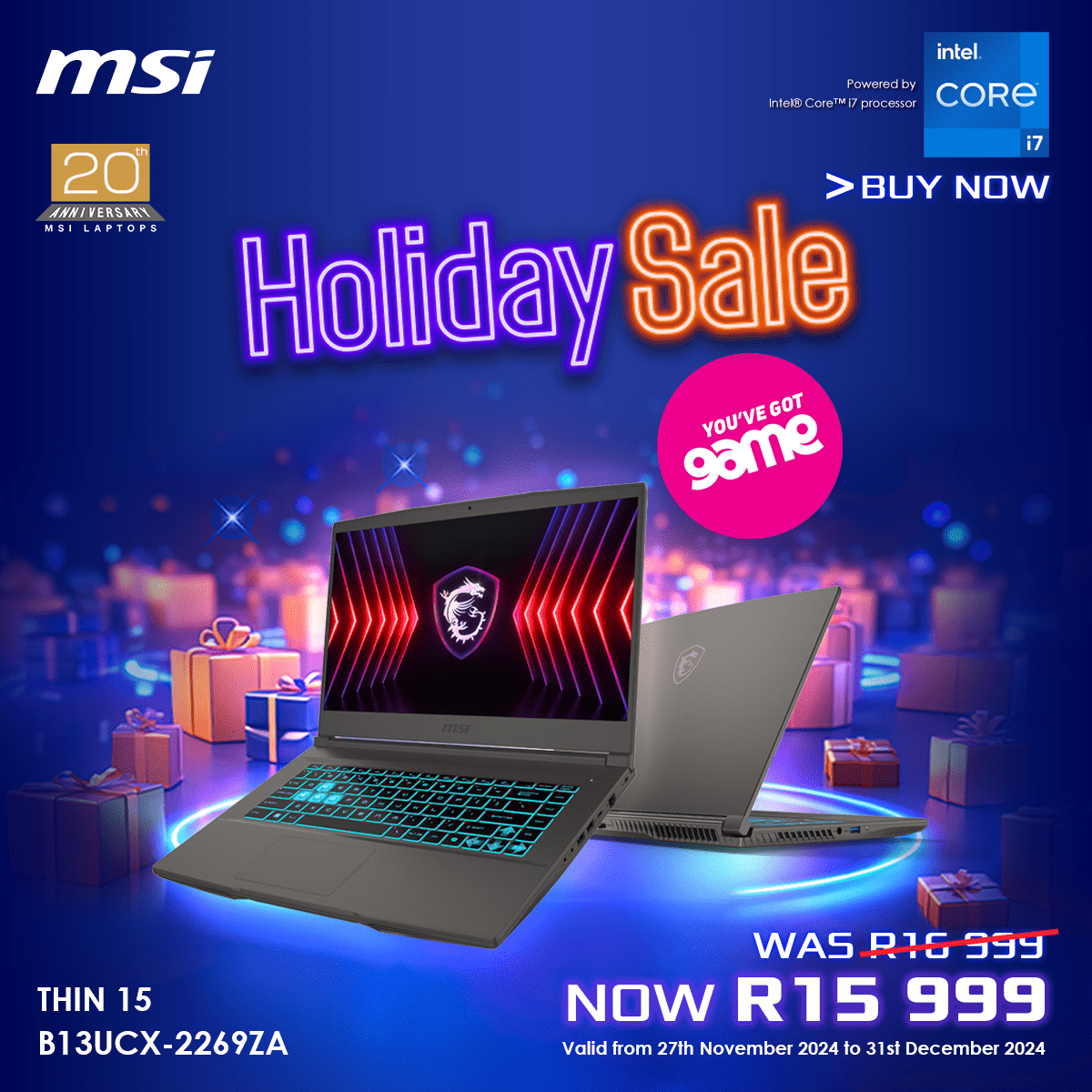 MSI is opgewonde om ons eksklusiewe vakansieverkope aan te kondig, wat van 10 Desember tot 31 Desember plaasvind. Dit is jou kans om die nuutste MSI-skootrekenaars te kry, kompleet met ‘n opwindende speletjiebundel wat hierdie feestyd werklik onvergeetlik sal maak.