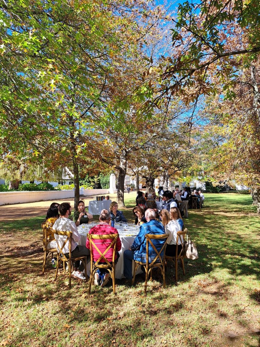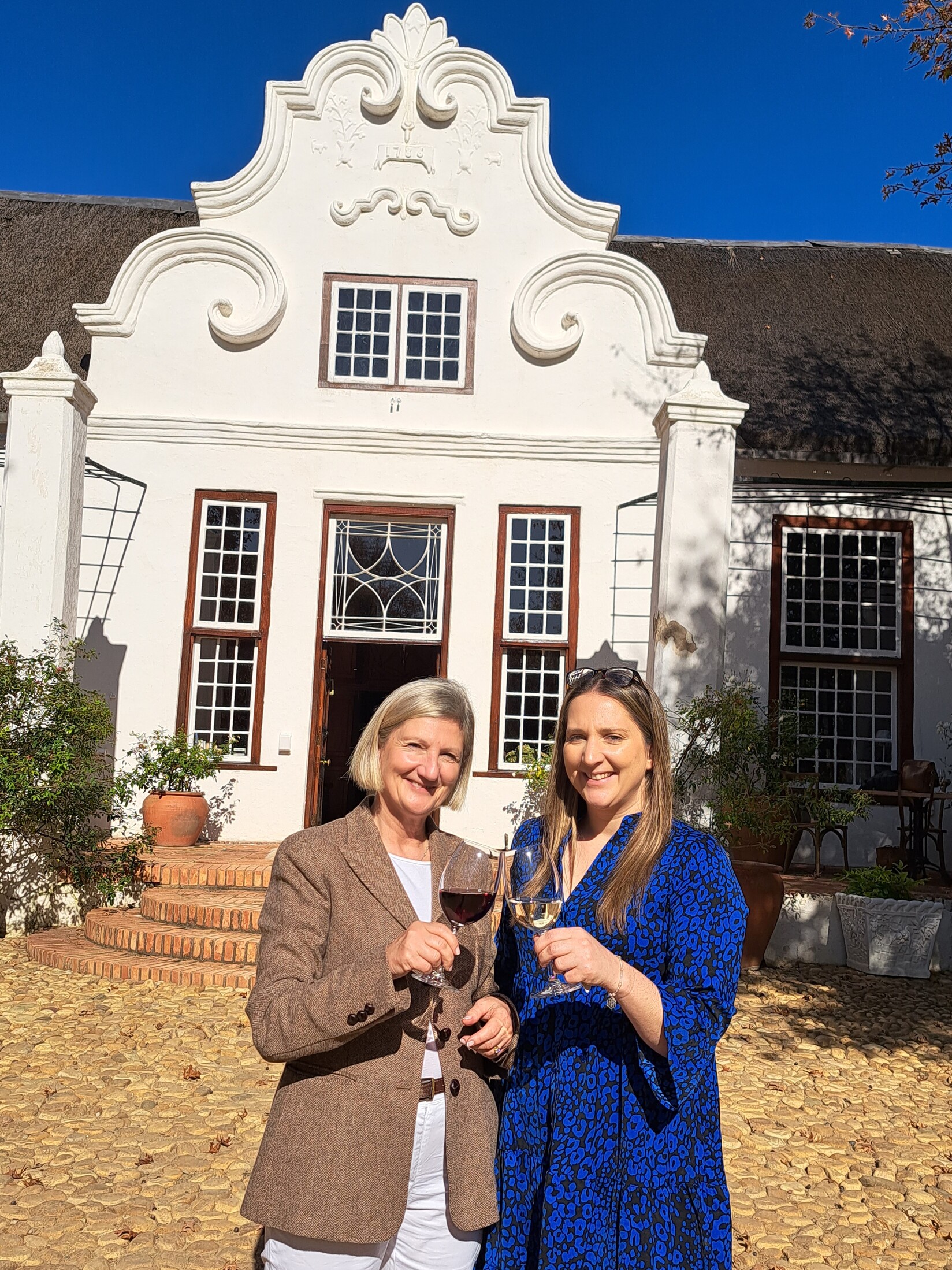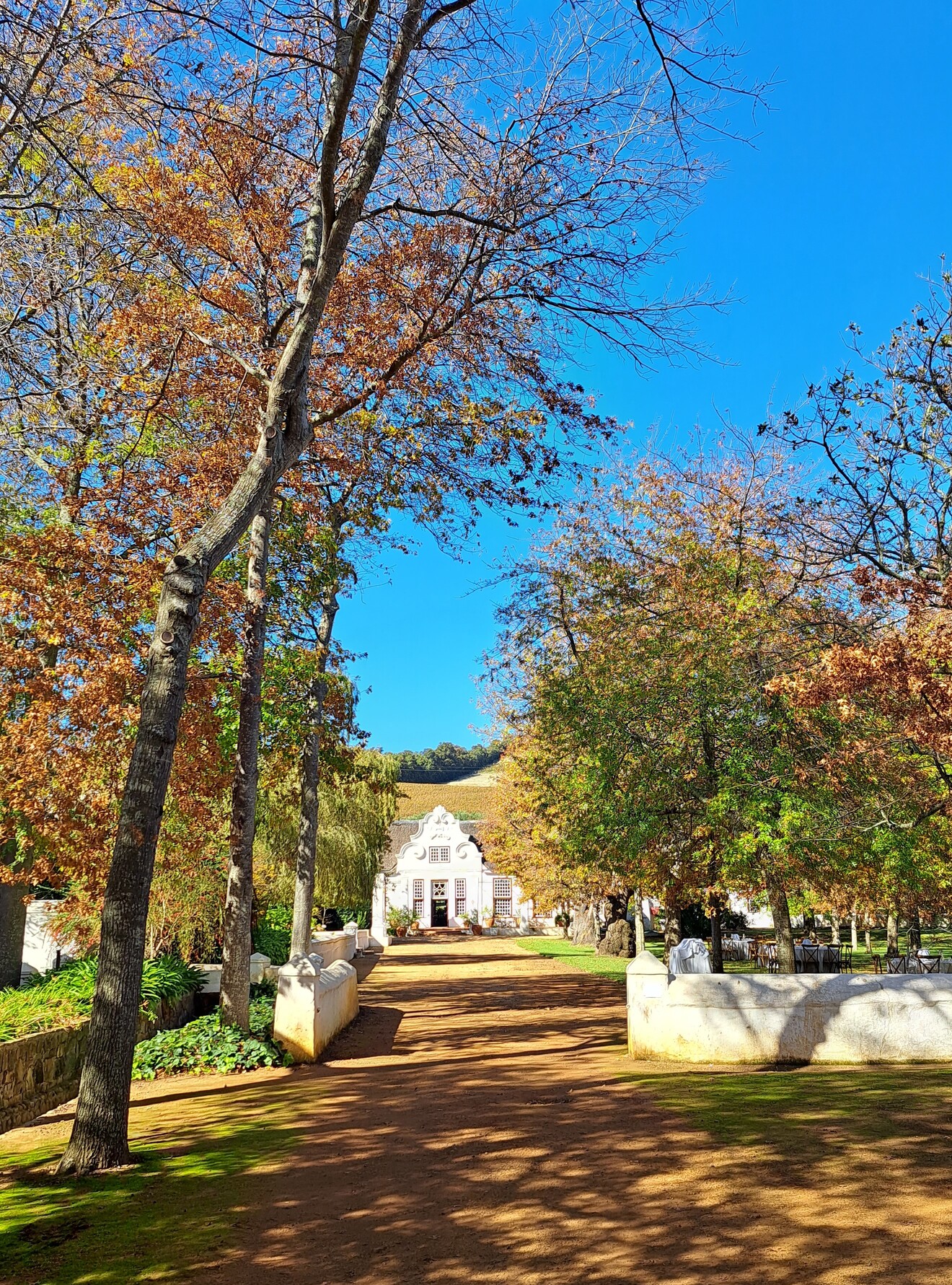 Ons stap daarna onder deur die lang ry bome na die olyfproe in die tuin, terwyl die historiese herehuis oor ons waak. Die ou herehuis wat uit 1786 dateer, se gewel pryk trots met die jaartal.