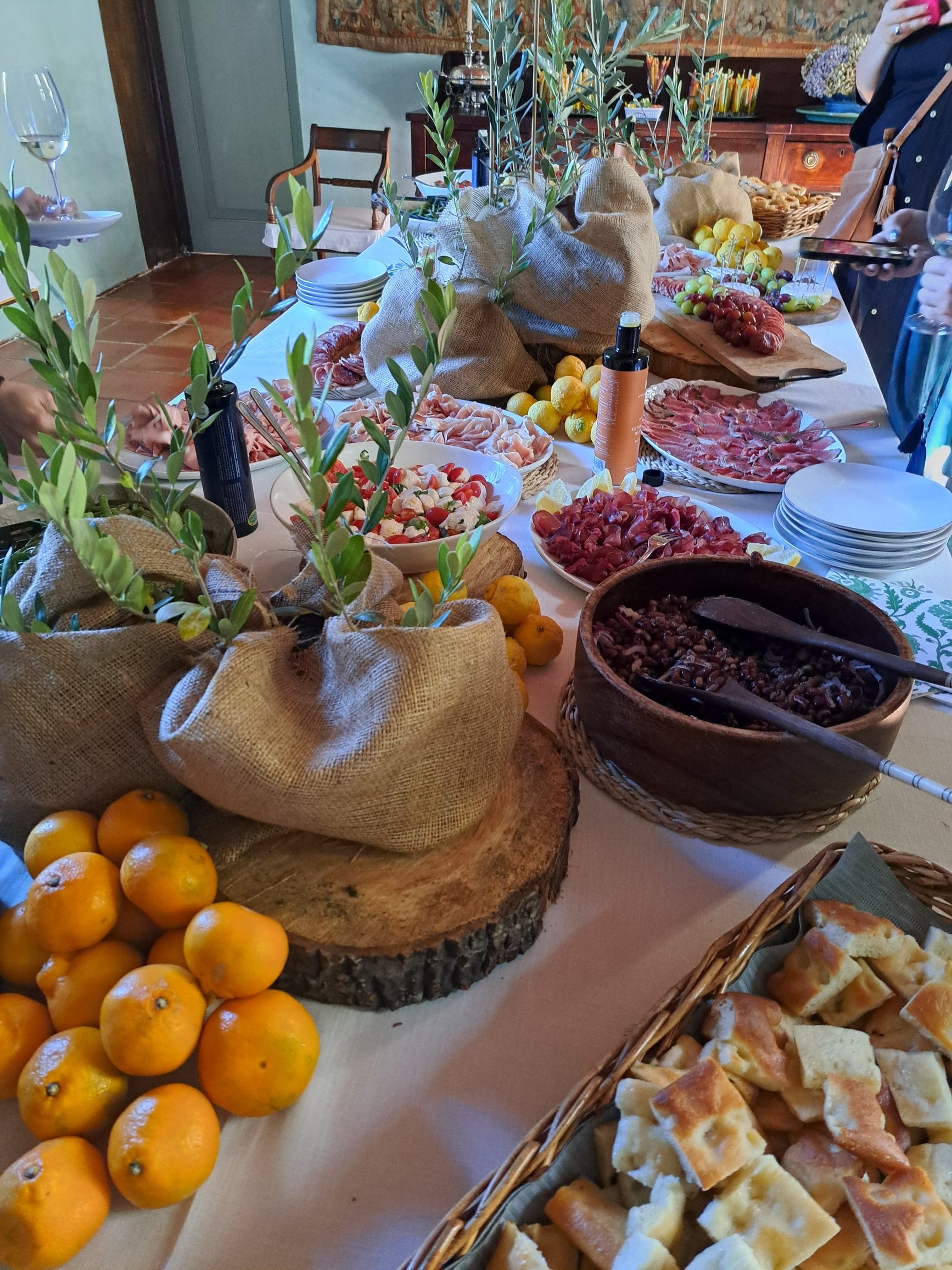 Na die olyfolieproe, is gaste in die herehuis op ‘n tradisionele Italiaanse middagete met koue vleis, kaas, tuisgebakte focacia, pasta en wyn onthaal.