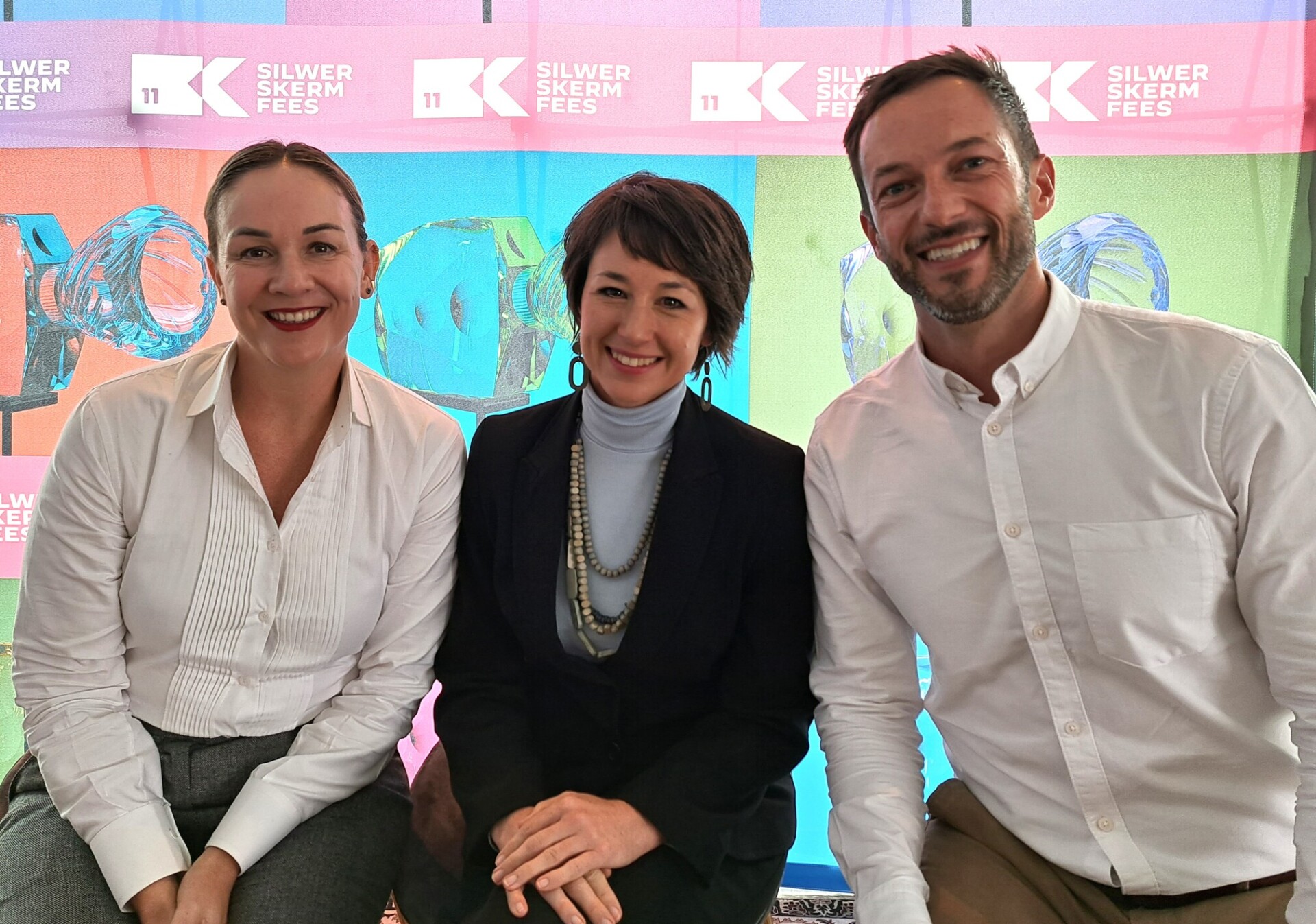 - Nicola van Niekerk, Hoof van M-Net Premium-inhoud en ko-produksies, Tina Kruger, programhoof en Waldimar Pelser, M-Net Direkteur: Premium-kanale by die bekendstellingsfunksie.