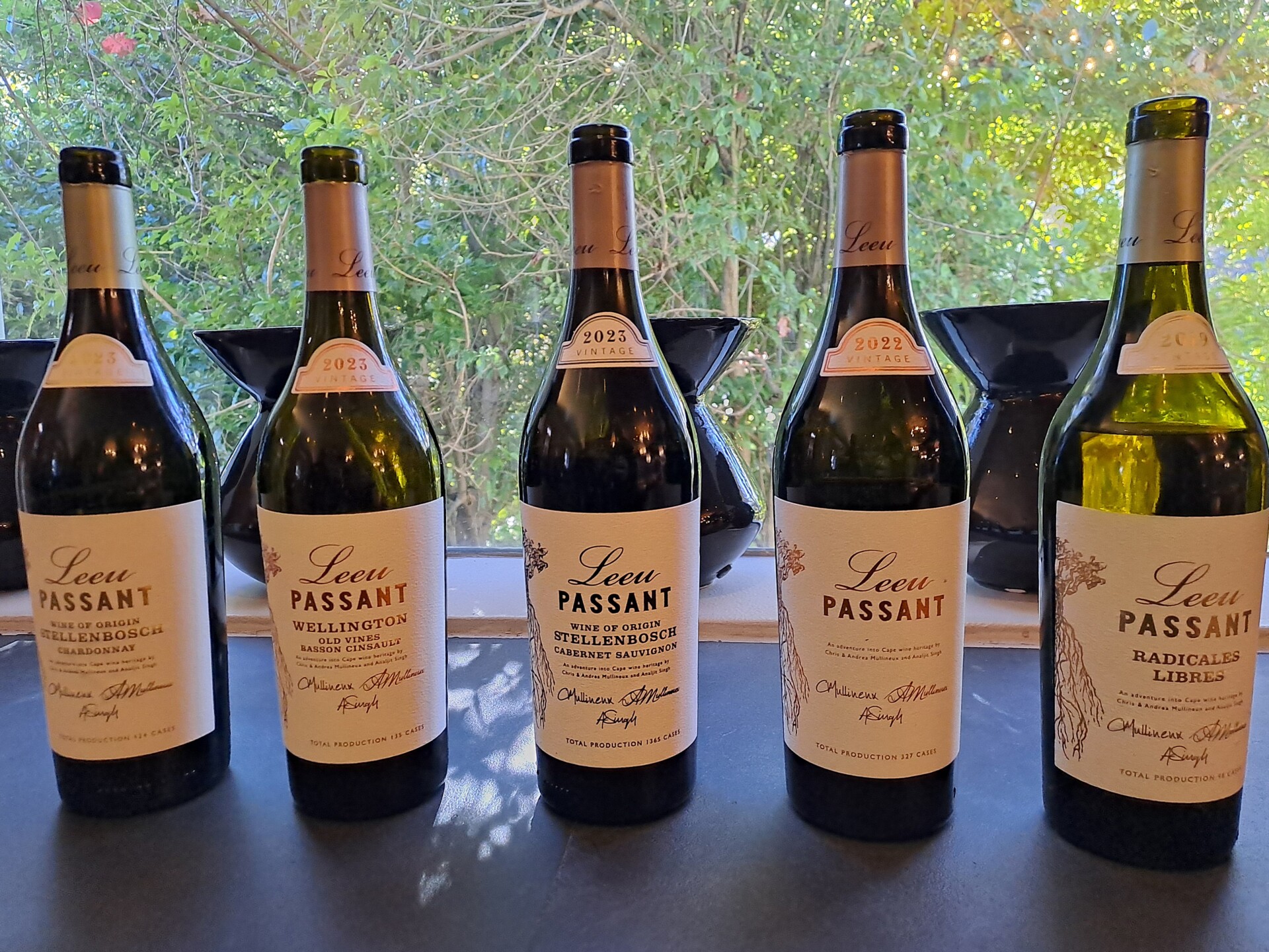 - Die nuwe oesjare van die reeks se vyf wyne, die Leeu Passant Stellenbosch Chardonnay 2023; Leeu Passant Wellington Cinsault 2023 ; Leeu Passant Stellenbosch Cabernet Sauvignon 2023 ; Leeu Passant The Leeu Passant 2022 en die Leeu Passant Radicales Libres 2022, is nou beskikbaar.