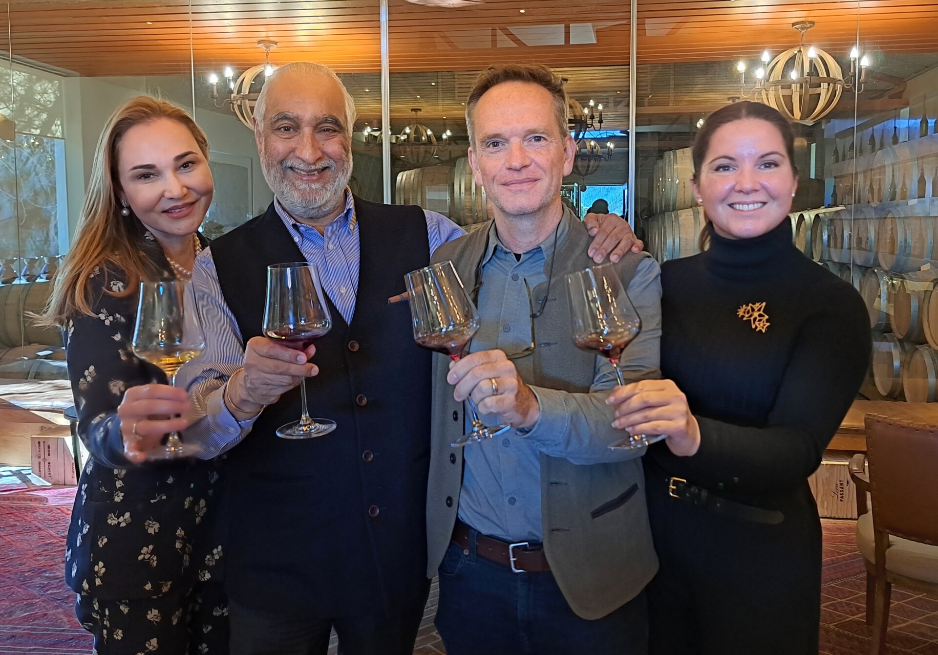 - Nicolette Waterford, Bas Singh, Chris en Andrea Mullineux klink ‘n glasie op die tiende oes wat pas agter die rug is en die vrystelling van die nuwe oesjare.