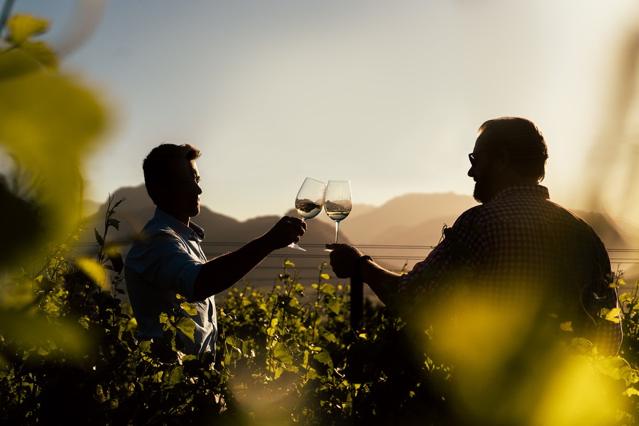 - Takuan von Arnim, nou Haute Cabrière se Direkteur van Wyn en Tim Hoek, nou Haute Cabrière se keldermeester, in die wingerde.