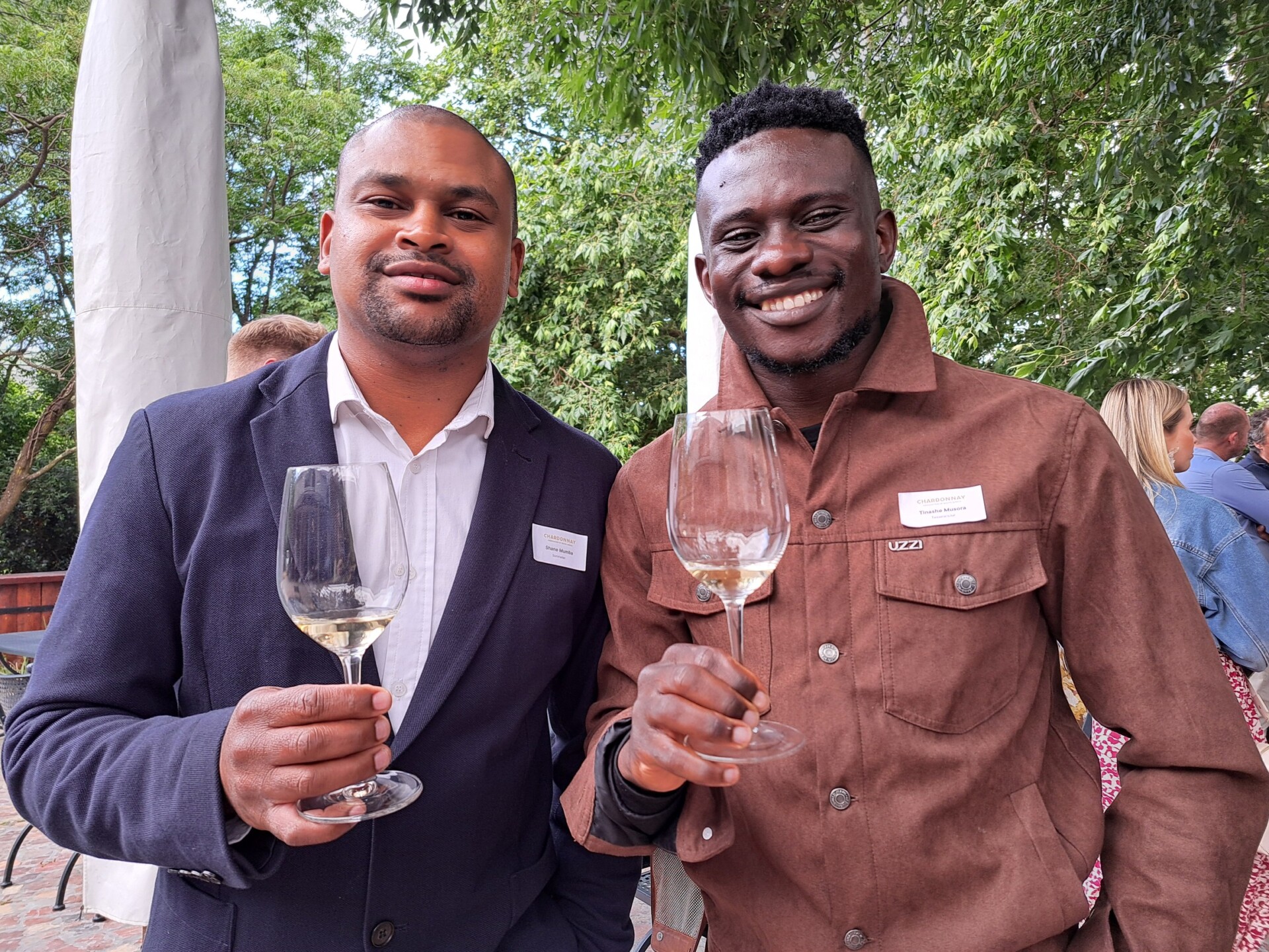 - Shane Mumba, sommelier en brandewyn-ambassadeur by die SA Brandewynstigting en Tinashe Musora (sommelier by Creation).