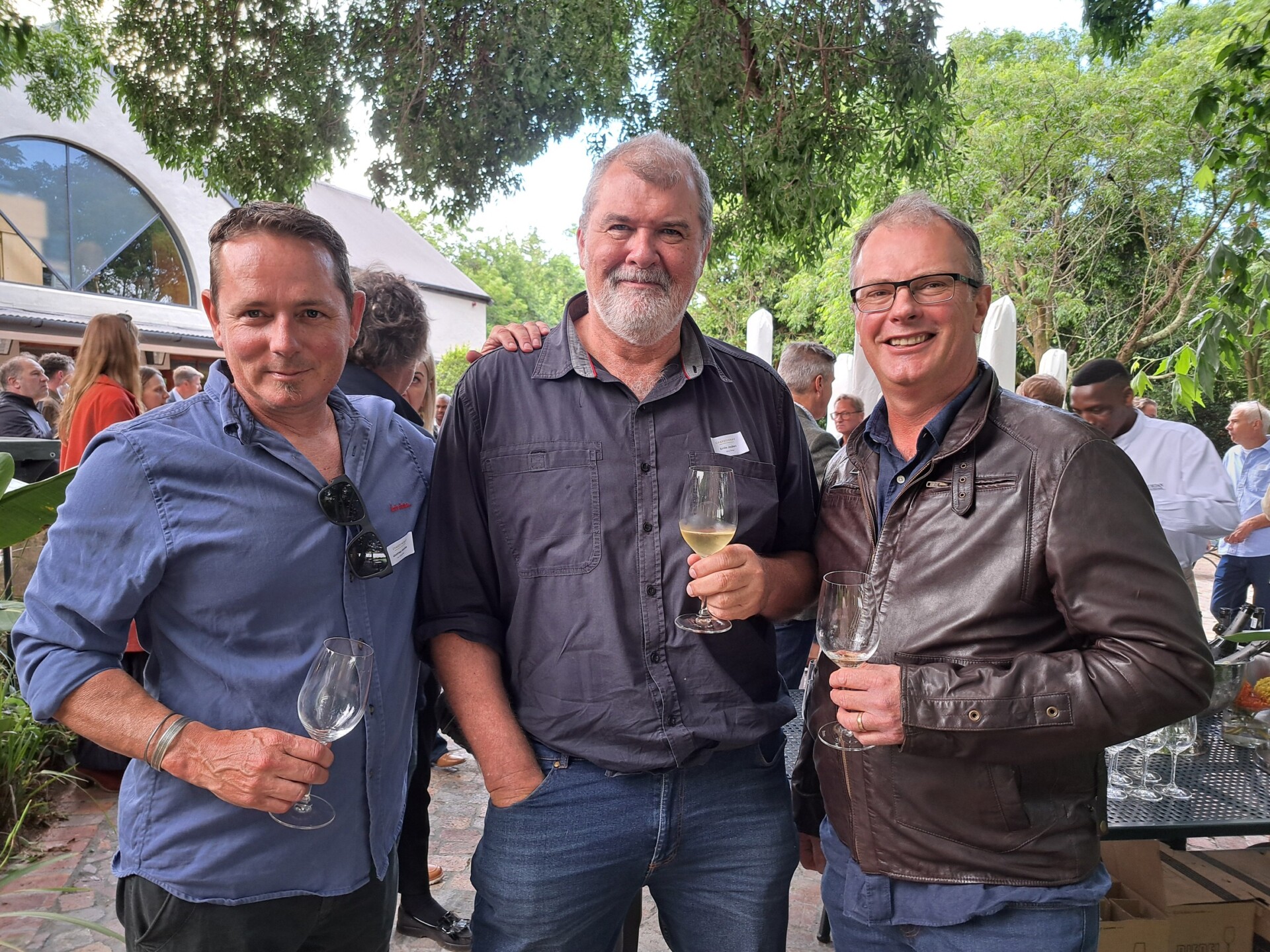 - Gottfried Mocke (Cap Maritime), Emile Joubert (wynskrywer) en David Finlayson (David Finlayson Wines).