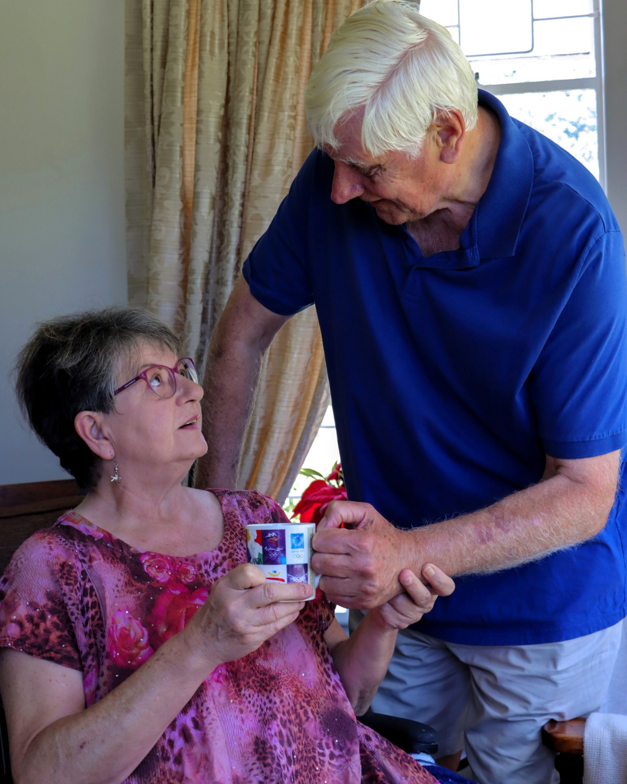 Sy raak stil en die traanpoele dam in haar oë op. Nooit in haar verste verbeelding, vertel sy, het sy kon dink dat sy op 66 grootliks bedlêend sou wees nie. Haar lewe lank was sy ’n wakker mens. Tuin gemaak. Kerkorrel gespeel. Vetkoek vir ’n tuisnywerheid gebak. Jare in die onderwys as musiekjuffrou gewees. Vir ’n inkomste naaldwerk gedoen tot dit gevoel het asof haar rug afknak. Die land platgereis om op honderde verhoë te staan. Onwettig ’n ouma in Engeland opgepas. As goewernante vier balhorige koninklike kasteelkinders in toom probeer hou.