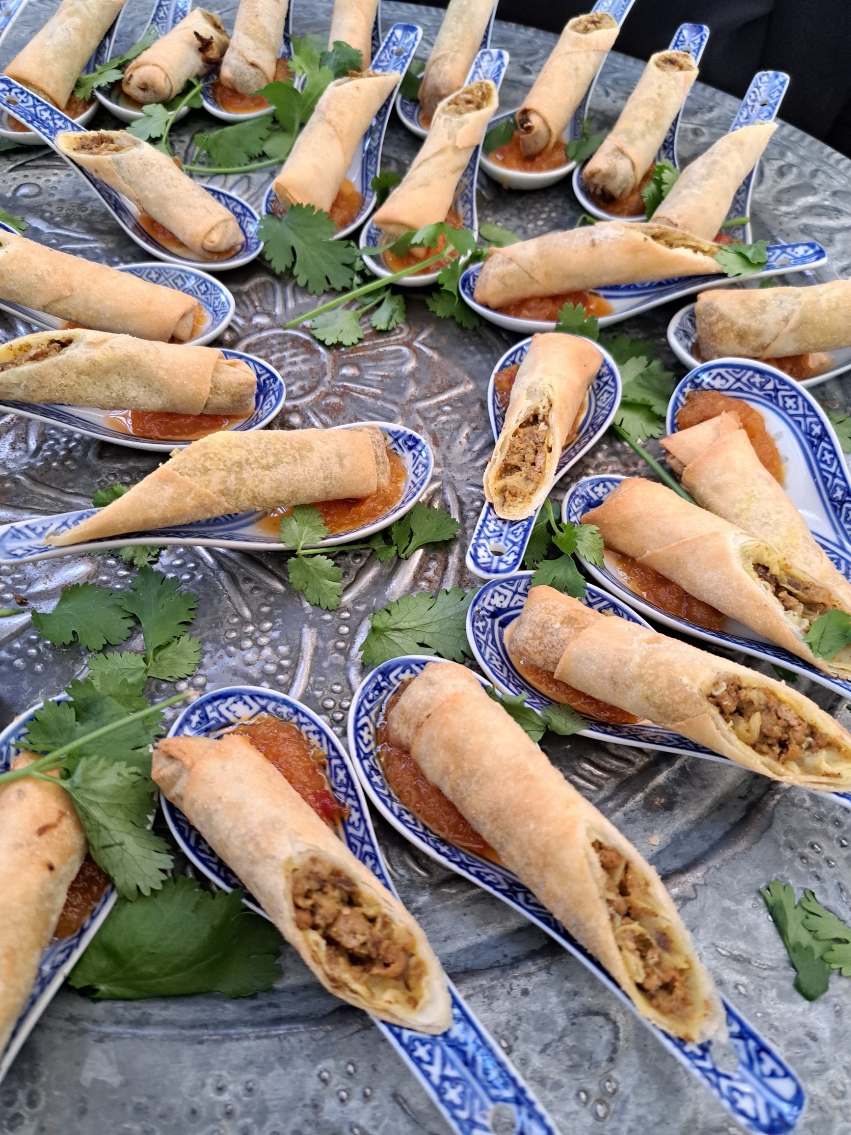 - Die heerlike bobotie springrolls was ’n treffer saam met die yskoue vonkelwyn.