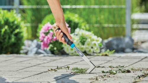 Om onkruid tussen plaveisels te verwyder kan ’n frustrerende taak wees as jy nie die regte gereedskap het nie. Gebruik die GARDENA combisystem Patio Weeder om mos en onkruid tussen plaveiselstene, plaveiselvoeë en muurrande te verwyder. Die GARDENA combisystem maak voorsiening vir buigsame gebruik, danksy die verwisselbare aanhegsels. Die Patio Weeder pas saam met alle handvatsels van die GARDENA combisystem en kan met die handvatsel gemonteer en vasgemaak word. Om gemaklik te werk sonder om te buk kan jy die kort handvatsel maklik verwyder en dit met die combisystem Verlenghandvatsel vervang. Die veilige verbinding tussen die onkruid en die handvatsel verseker dat jy altyd gemaklik kan werk. Die ergonomies gevormde greep met ’n geïntegreerde sagte komponent is nommerpas in jou hand met ’n skuins punt, sodat jou greep nie sal gly nie. Die geslypte, dubbelsydige lem van roesbestande, getemperde staal sal lank hou. Dit verseker dat jy optimale resultate behaal terwyl jy mos en onkruid verwyder. Die Patio Weeder is met ’n lembeskerming vir veilige berging toegerus.
