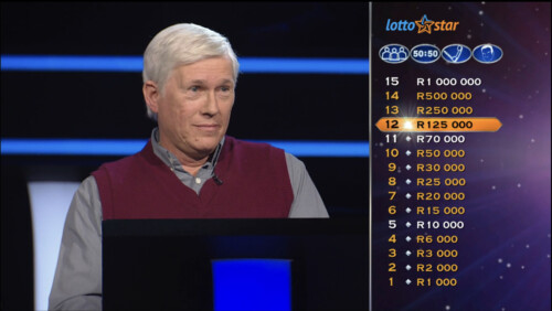 Met R500 000 wat wink, was Garry onseker oor die korrekte antwoord. Wie was die laaste man wat in 1972 op die Maan geloop het? Hy het sy eerste hulplyn, die 50/50-opsie, gekies. Maar selfs die twee name wat oorgebly het, het hom nog oortuig van wie die regte antwoord is nie. Die gehoor se hulp is ingeroep, en 89% van hulle het gedink dis John W. Young.
