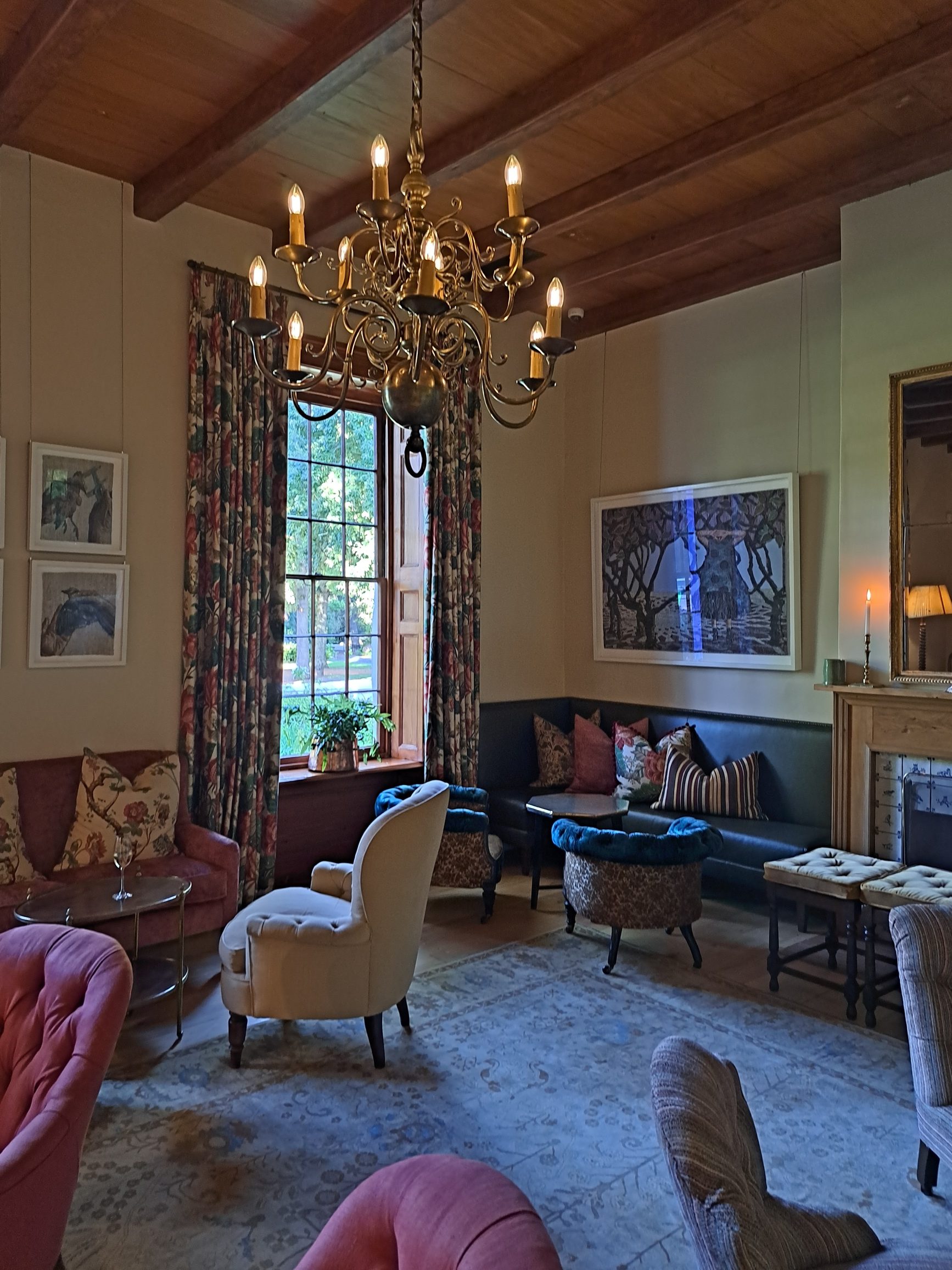 Benewens twee elegante eetkamers, is The Manor House ook die tuiste van die Drawing Room – ’n wonderlike ruimte vir voor- en na-ete drankies en versnaperinge. En tussen die gange, kan gaste na die Voorkamer gaan vir privaat geselsies, waar Wim Botha se treffende Mieliepap Pietà te sien is.