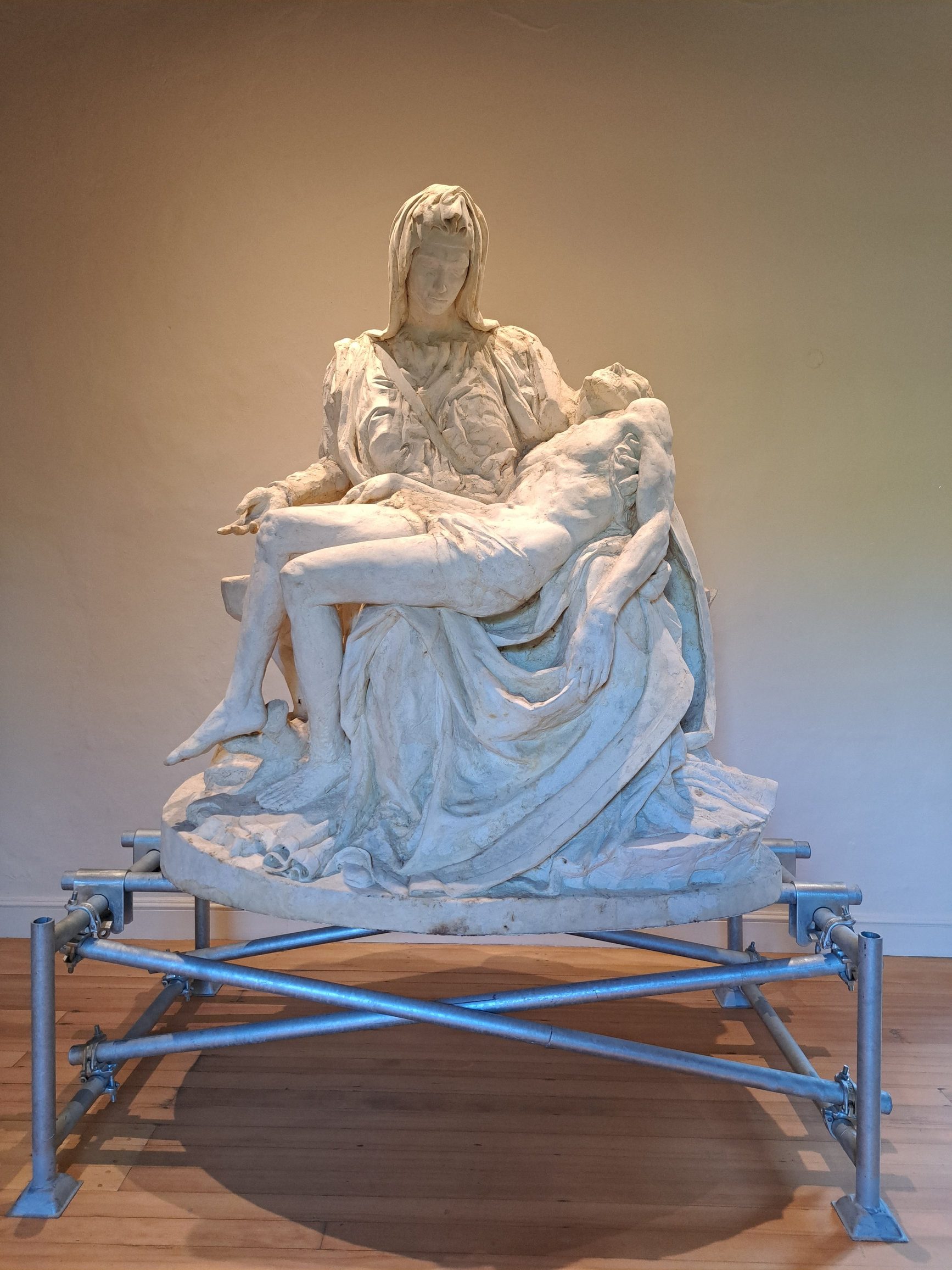- Tussen die kosgange, kan gaste na die Voorkamer gaan vir privaat geselsies, waar Wim Botha se treffende Mieliepap Pietà staan.