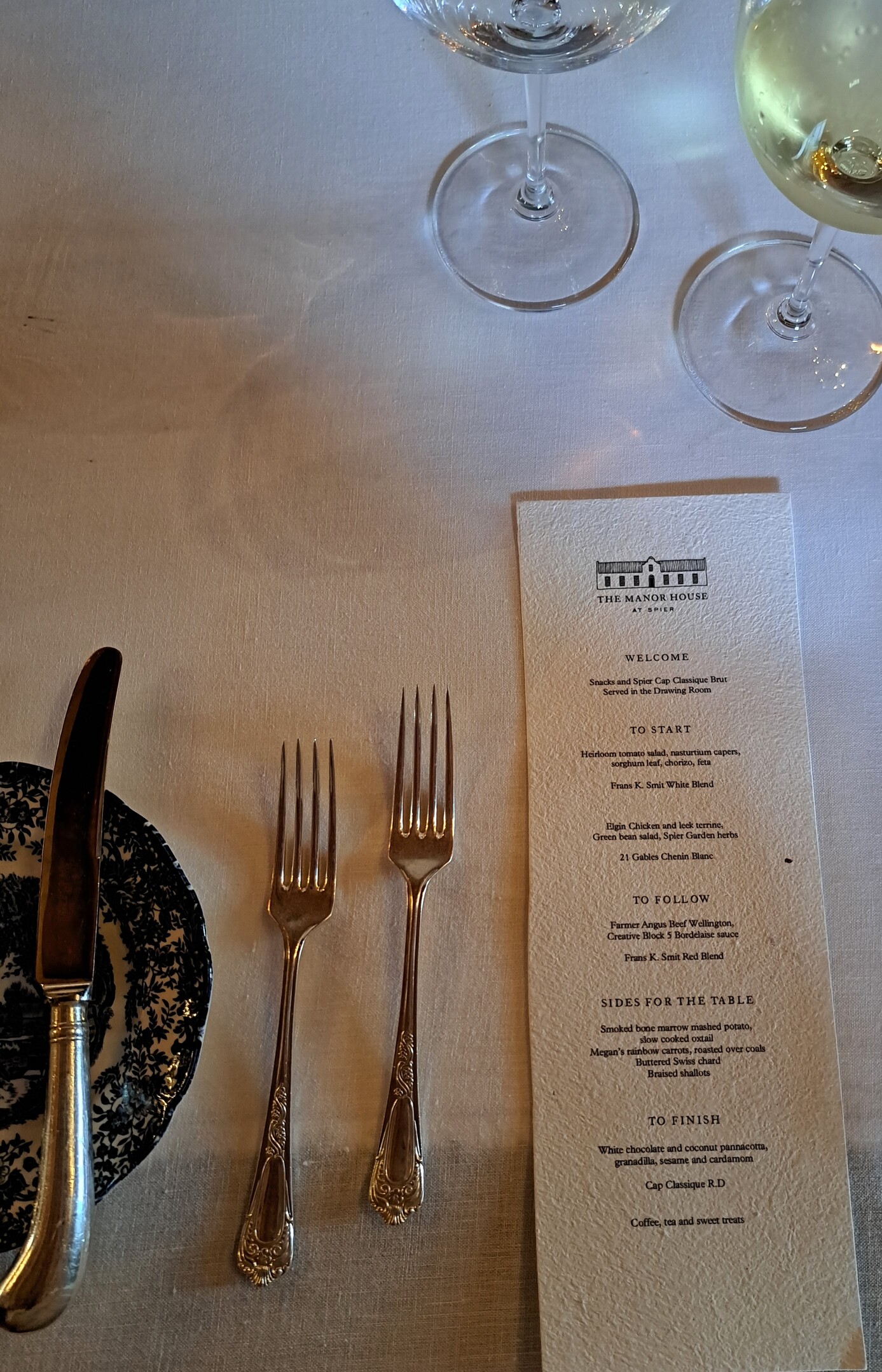 Maar Spier is meer as net kos. Dis die wyn wat wêreldwyd die praatwerk doen. Johan Jordaan, Spier se keldermeester en kundige sommelier, Georgio Meletiou, was nou betrokke by die samestelling van The Manor House se wynpasmaats. Dit verseker dat die volle uitdrukking van terroir bereik word, deur ’n storie deur elke mondvol te vertel.