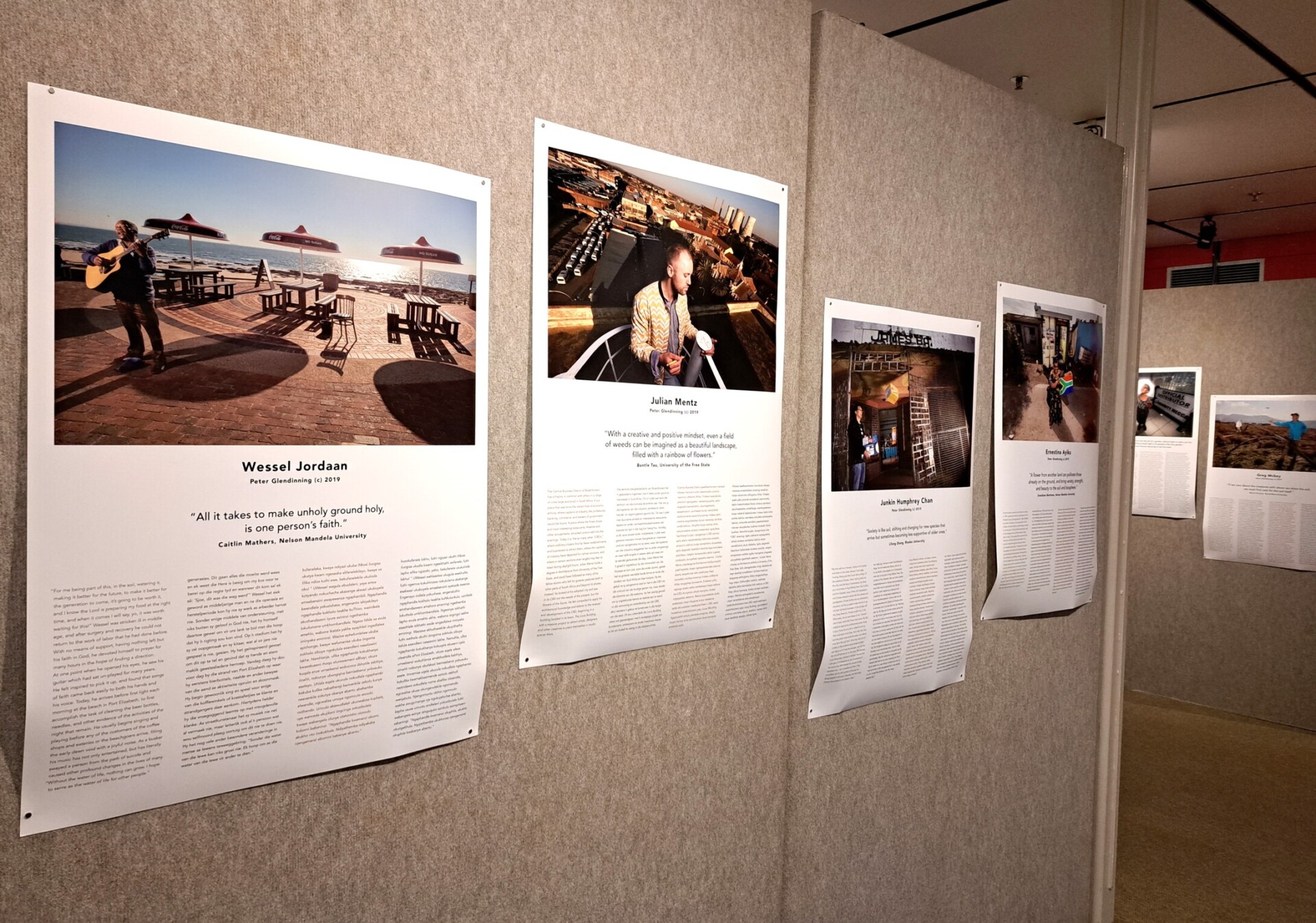 - Attached to the Soil is in die US Museum as deel van die visuele kuns-afdeling uitgestal en is ’n versameling fotografiese portrette wat geskep is in in samewerking tussen Peter Glendinning, Fulbright-geleerde en professor in Kuns, Kunsgeskiedenis en Ontwerp aan die Michigan State University, met Suid-Afrikaners van diverse ouderdomme en kulturele en sosiale agtergronde. Die foto’s poog om die hoop, vrese en aspirasies van hierdie individue te wys, die diversiteit as gevolg van hul uiteenlopende agtergronde vas te vang en van die lyne te trek wat hulle bind.