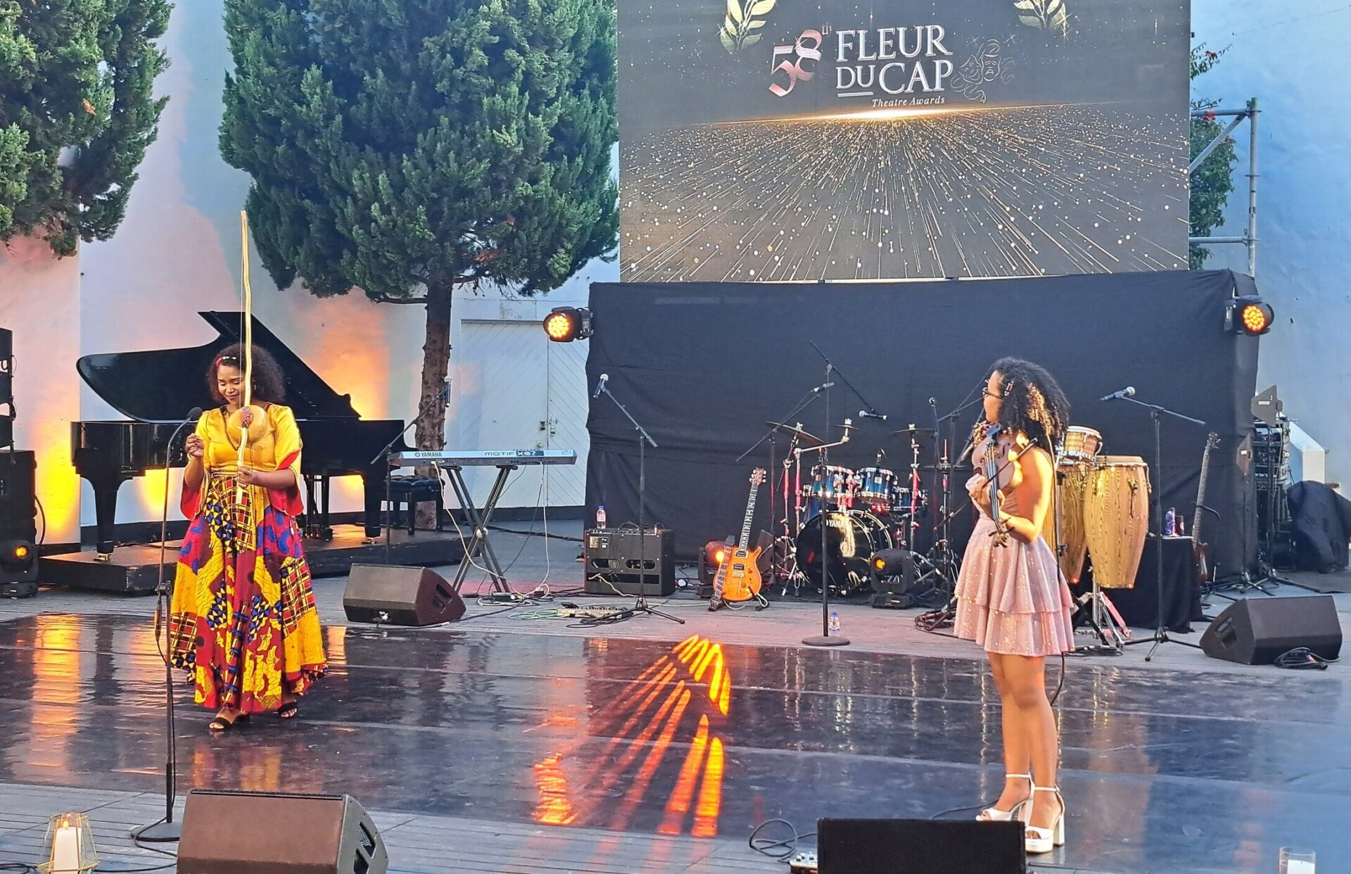 - Zinzi Nogagu en Kayline Lavendal Ndhlovu maak musiek tussen die oorhandigings deur.