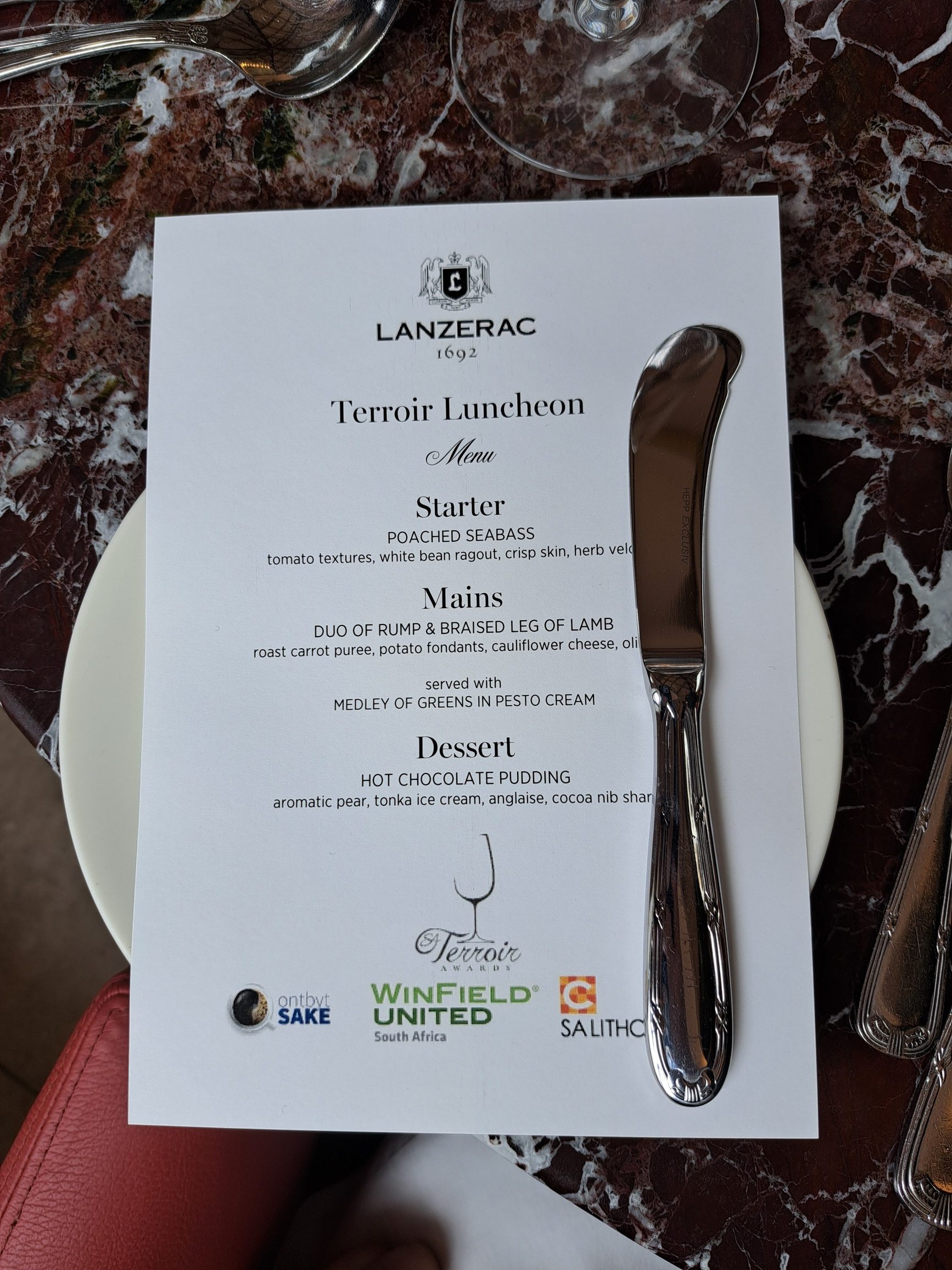 - Die spyskaart vir die dag is deur die span by Lanzerac Hotel en Spa se luukse Manor Kitchen-restaurant deur Stephen Fraser en sy span berei.