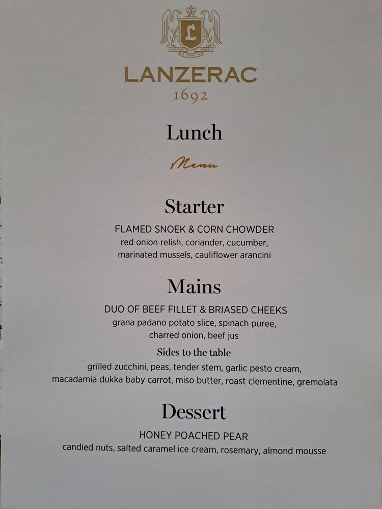 - Goeie wyne verg natuurlik ’n goeie spyskaart en die sjefs by Lanzerac het nie teleur gestel nie.