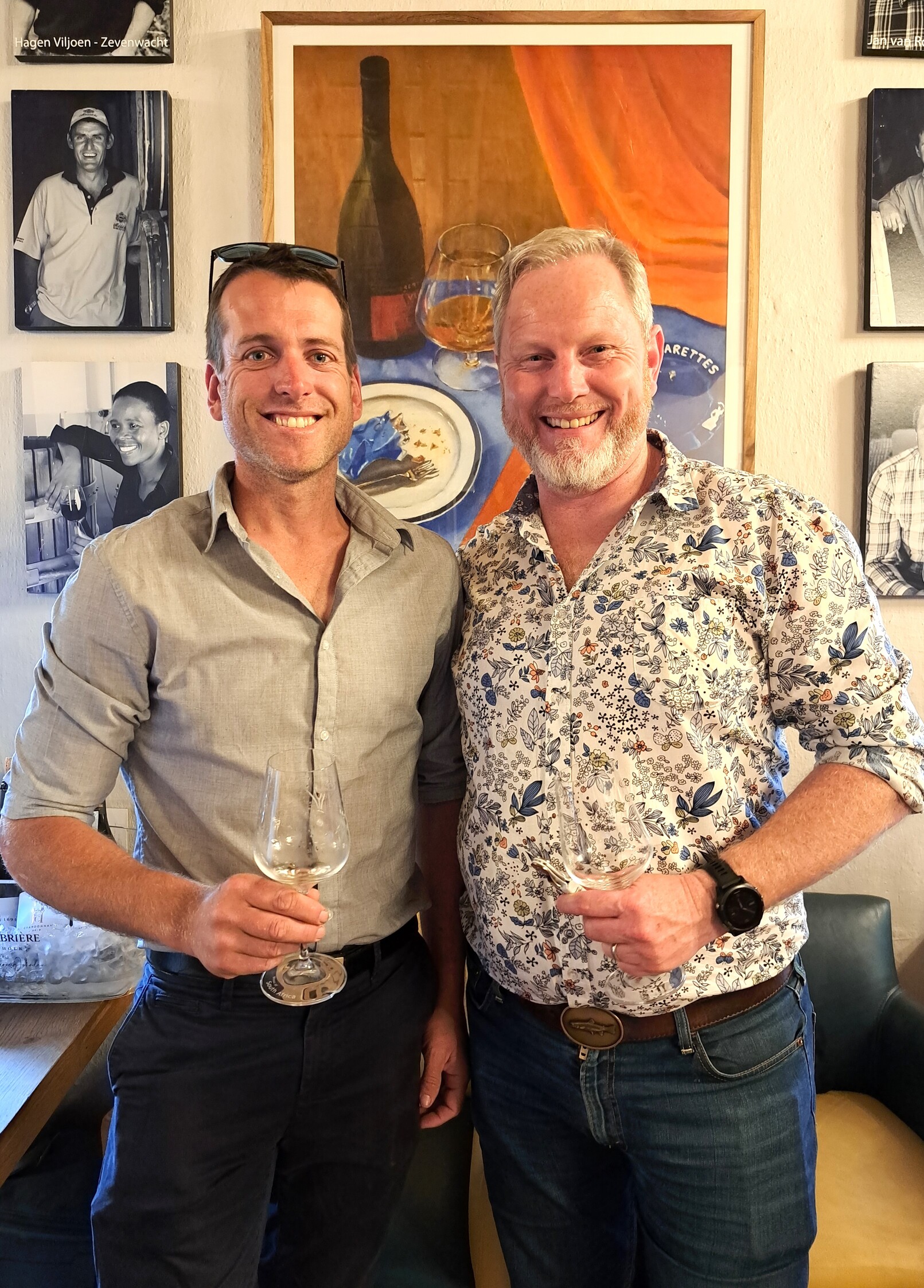 - Tim Hoek, Haute Cabrière buite Franschhoek se keldermeester en Alistair Rimmer, wynmaker by De Morgenzon buite Stellenbosch.