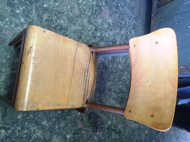 Maak seker die houtrugkant en -sitplek is vry van stof en silwerskoon. Indien daar areas is wat beskadig is, skuur dit glad of gebruik houtvuller (wood filler) om die areas gelyk te maak, en skuur die oortollige houtvuller glad sodra dit verhard het. Skuur die metaalpote baie liggies met growwe (60 gritt)-skuurpapier om dit effens grof te maak.