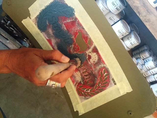 Gebruik ‘n stensil of stensils van jou keuse (verkrygbaar by Chisel & Chalk en die meeste ander spesialis-verfwinkels) en plak dit in plek met maskeerband. Gebruik onverdunde Annie Sloan-verf en ‘n stensilkwassie om die stensil(s) aan te bring.