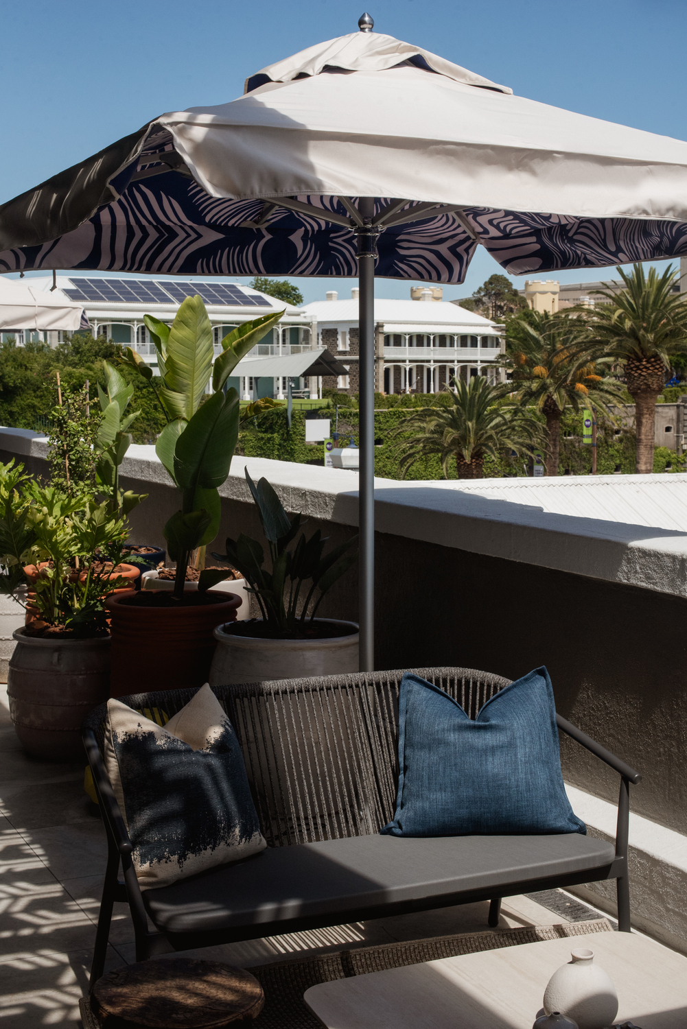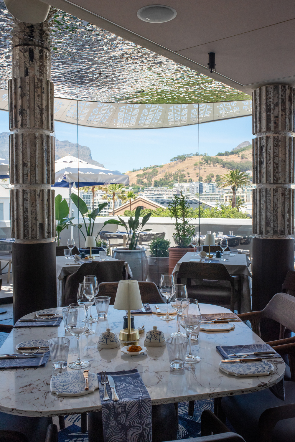 “Die ruimte ontwikkel deur die dag,” verduidelik sy. “Of dit nou middagete, skemerkelkies of ’n aand-ervaring is, die ontwerp pas by Kaapstad se buie aan—van stormagtige dae tot lewendige somer sonsondergange. Die buiteterras is ‘n uitbreiding van die eet- en kroegarea, ontwerp om die skoonheid van ons omgewing te versterk sonder om dit te oorskadu.”