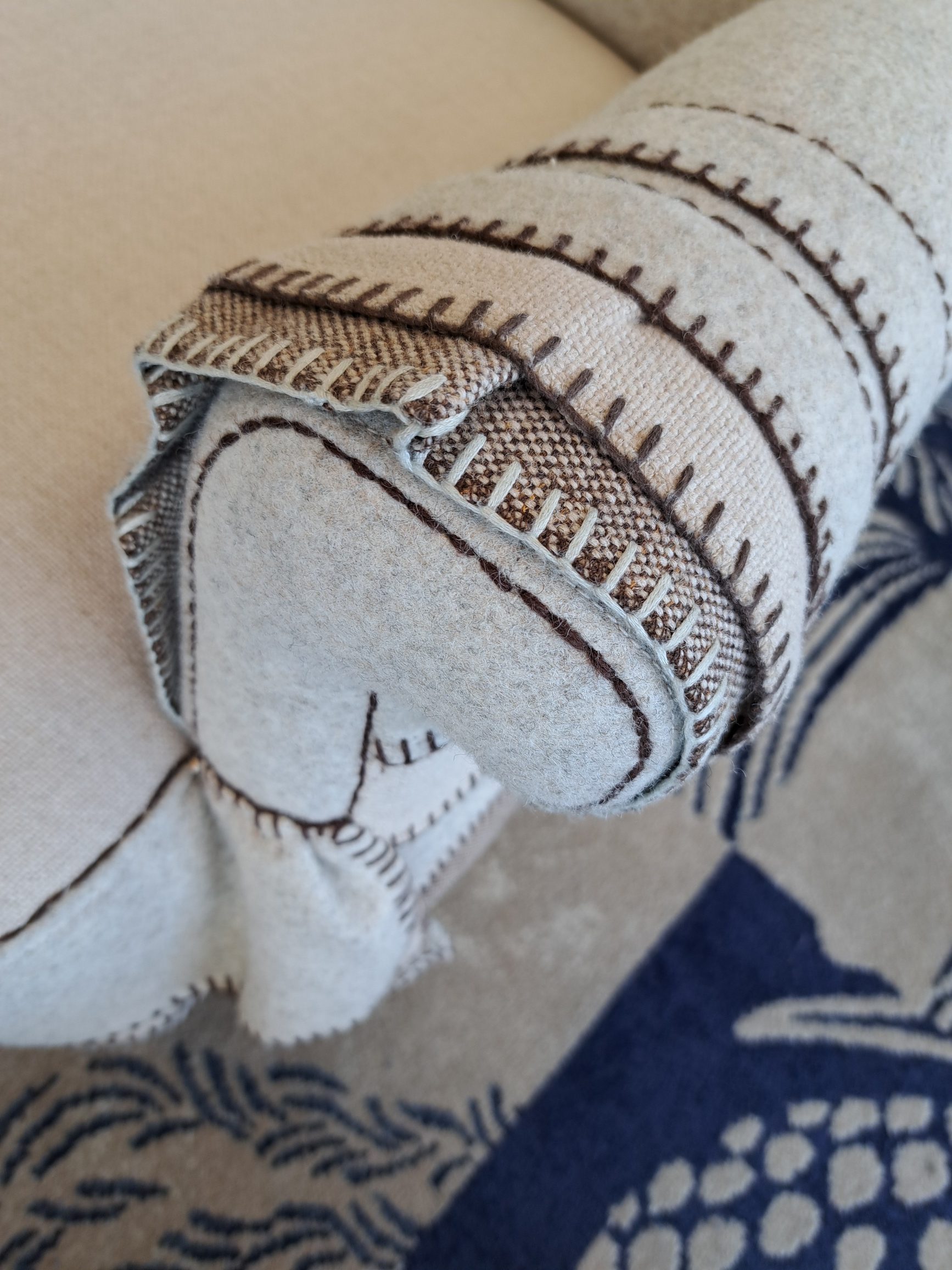 - Alles is keurig saamgestel deur binnenshuise ontwerper, Irene Kyriacou en Redecco. Hier is die pragtige detail op die handgestikte rusbanke deur Casamento waar jy drankies kan geniet.