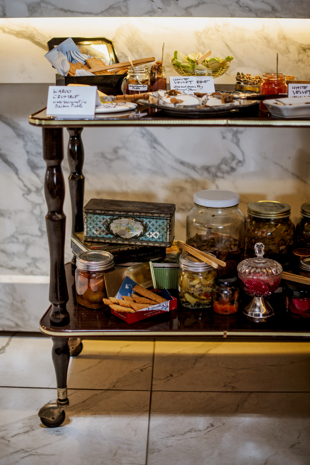 Ek het egter besluit om die nagereg mis te loop en my eerder met hart en siel in die kaastrollie ingeleef. Dis ‘n wonderlike vertoonstuk van Suid-Afrika se voorste, kleiner kaasmeesters en daarby is ingelegte, gepreserveerde heerlikhede van die koslegende Karen Dudley.