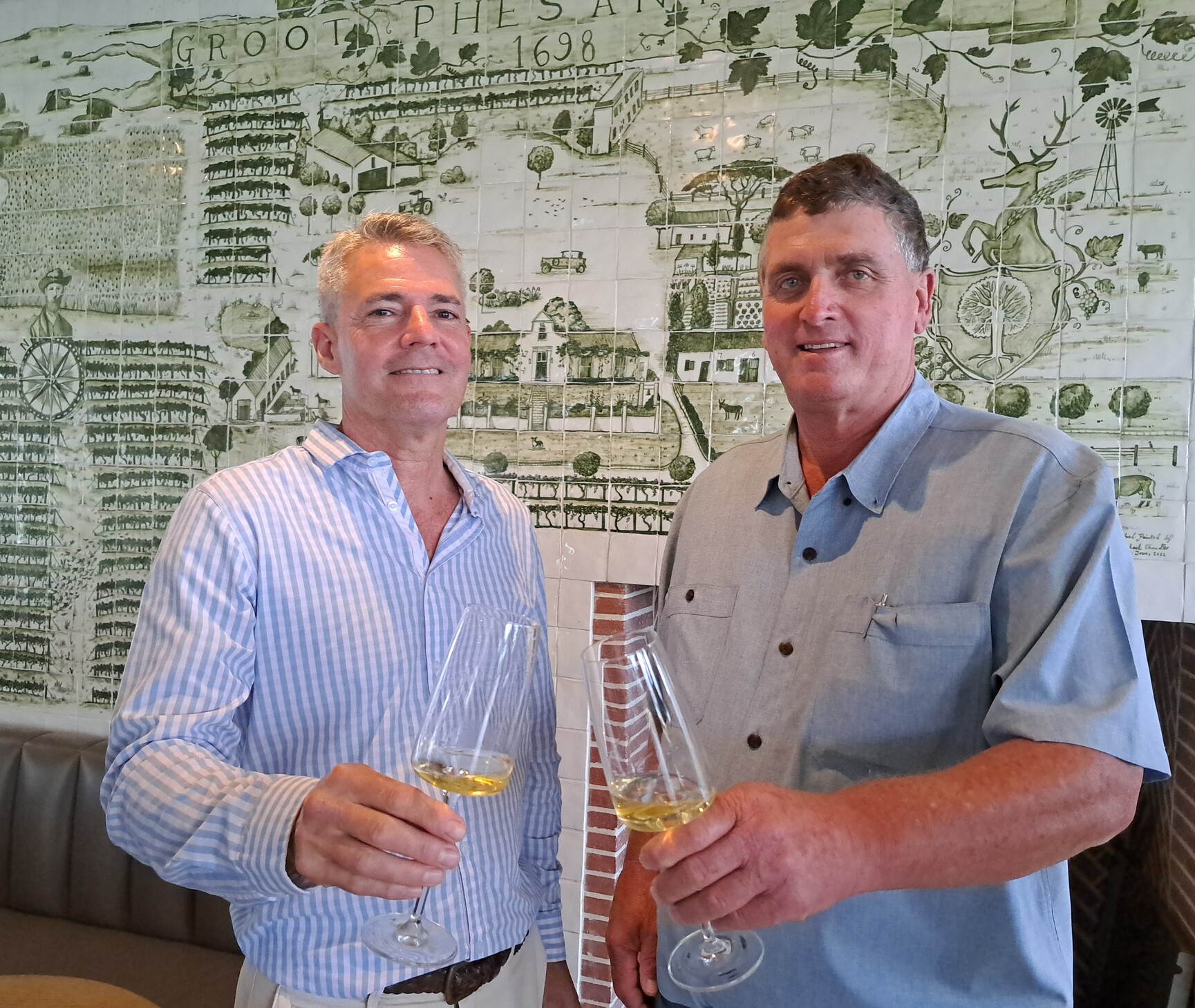 - Ian Pretorius, voorsitter van die Kaapstad Erfenisstigting en André (Oubaas) Brink, vierde geslag en huidige eienaar van die plaas.