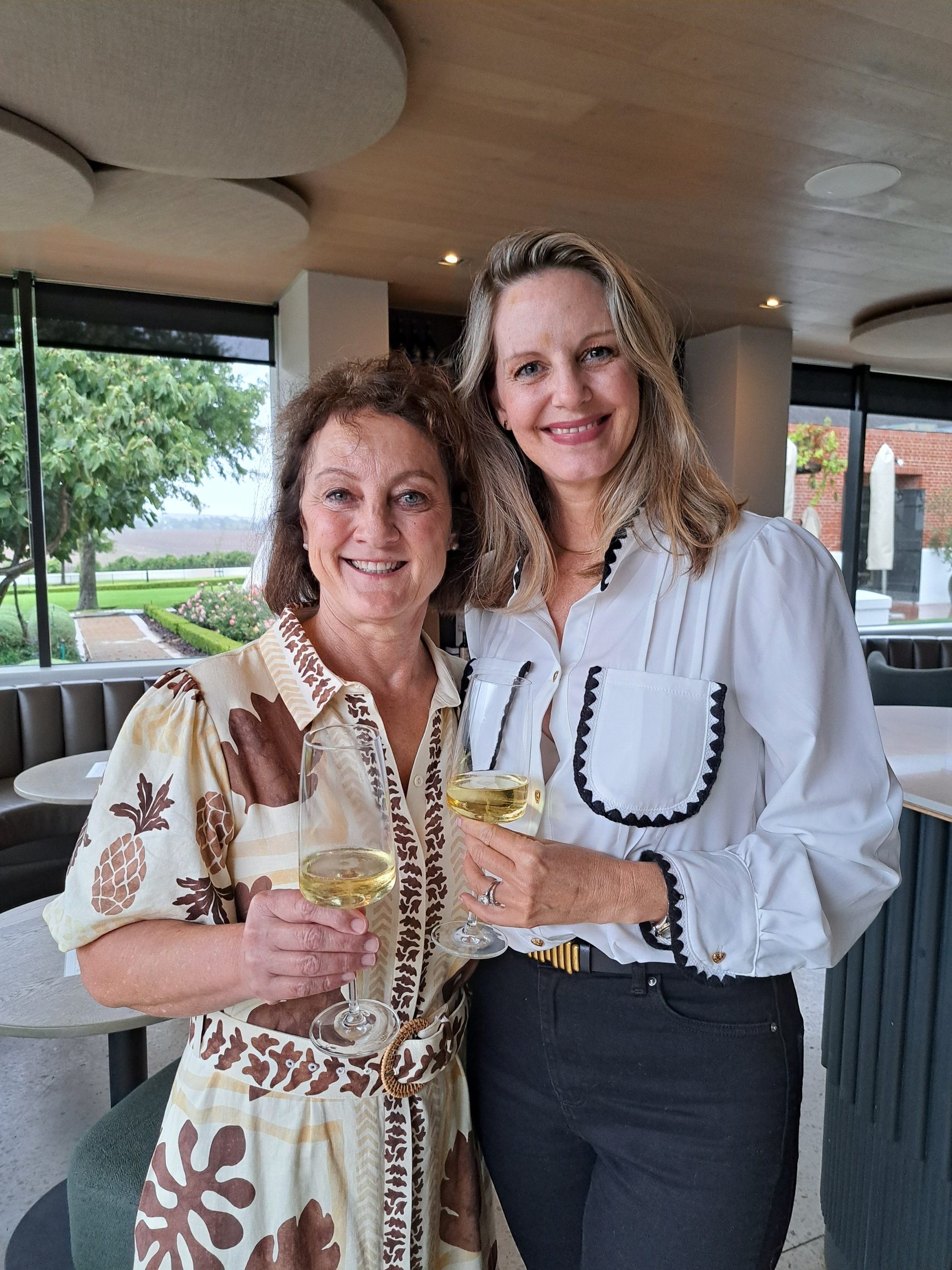 - Ronelle Brink (vierde geslag Brinks saam met haar man, Oubaas), klink ‘n glasie met Maryna Calow van WoSA.