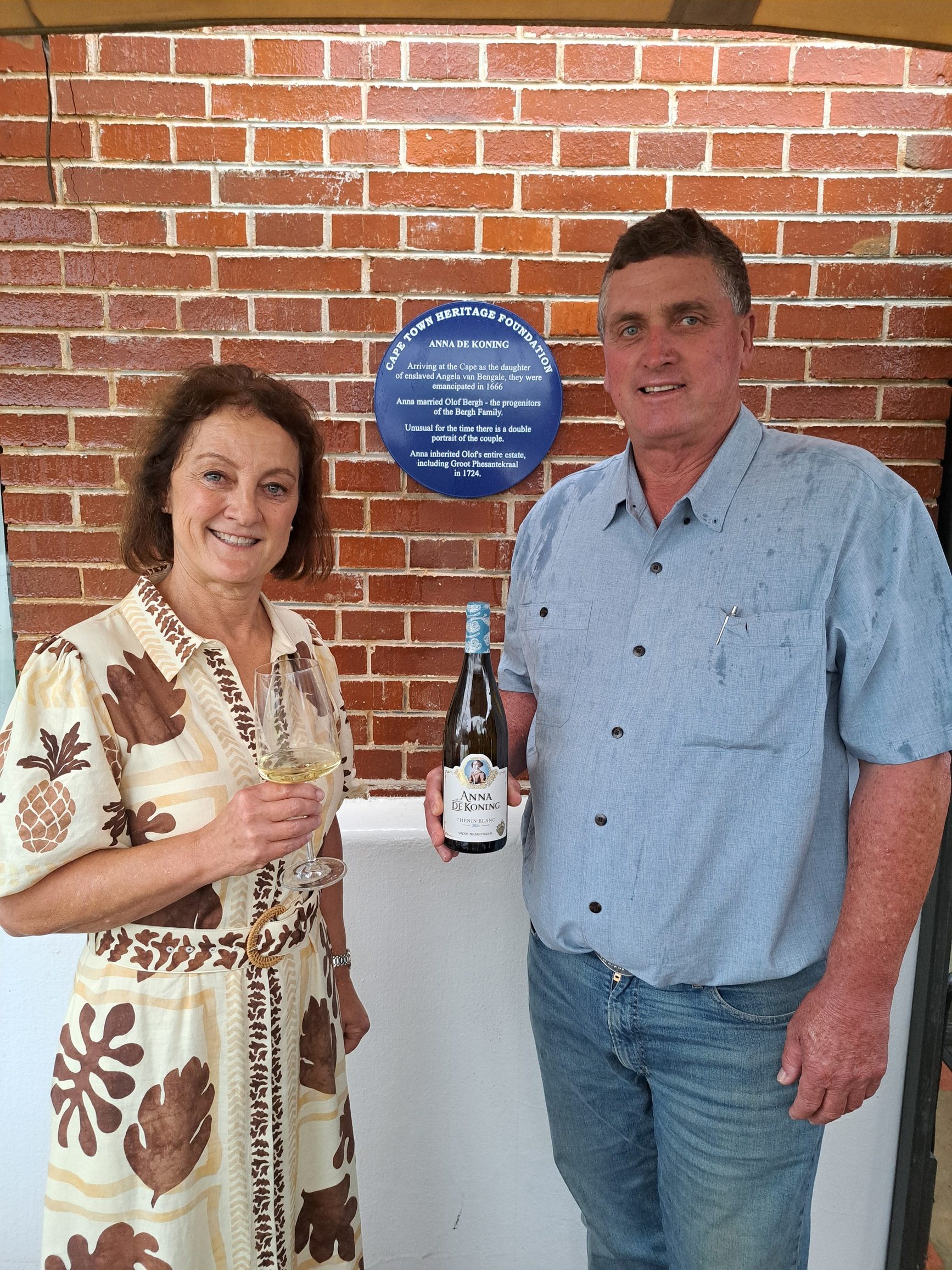 Benewens die gedenkplaat, is Anna de Koning vereer met haar eie Chenin Blanc wyn, die plaas se witwyn-vlagskip. Die plaas se bekroonde wynmaker, Richard Schroeder, skink vir ons elkeen ‘n glas van die Anna de Koning Reserve Chenin Blanc om die geleentheid te vier.