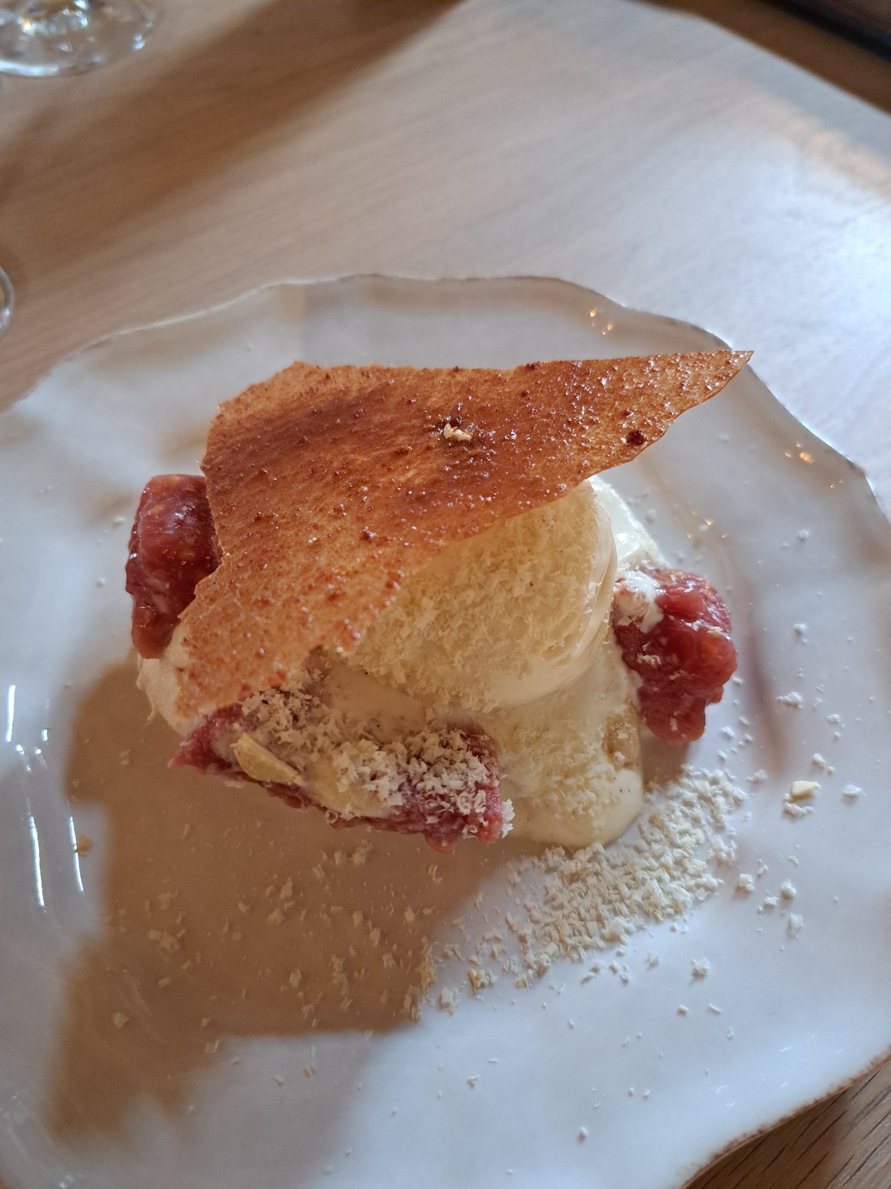 - Die seisoenale Pavlova met geposjeerde koejawel en gemmerroomys is met die Groot Phesantekraal Noble Late Harvest bedien.