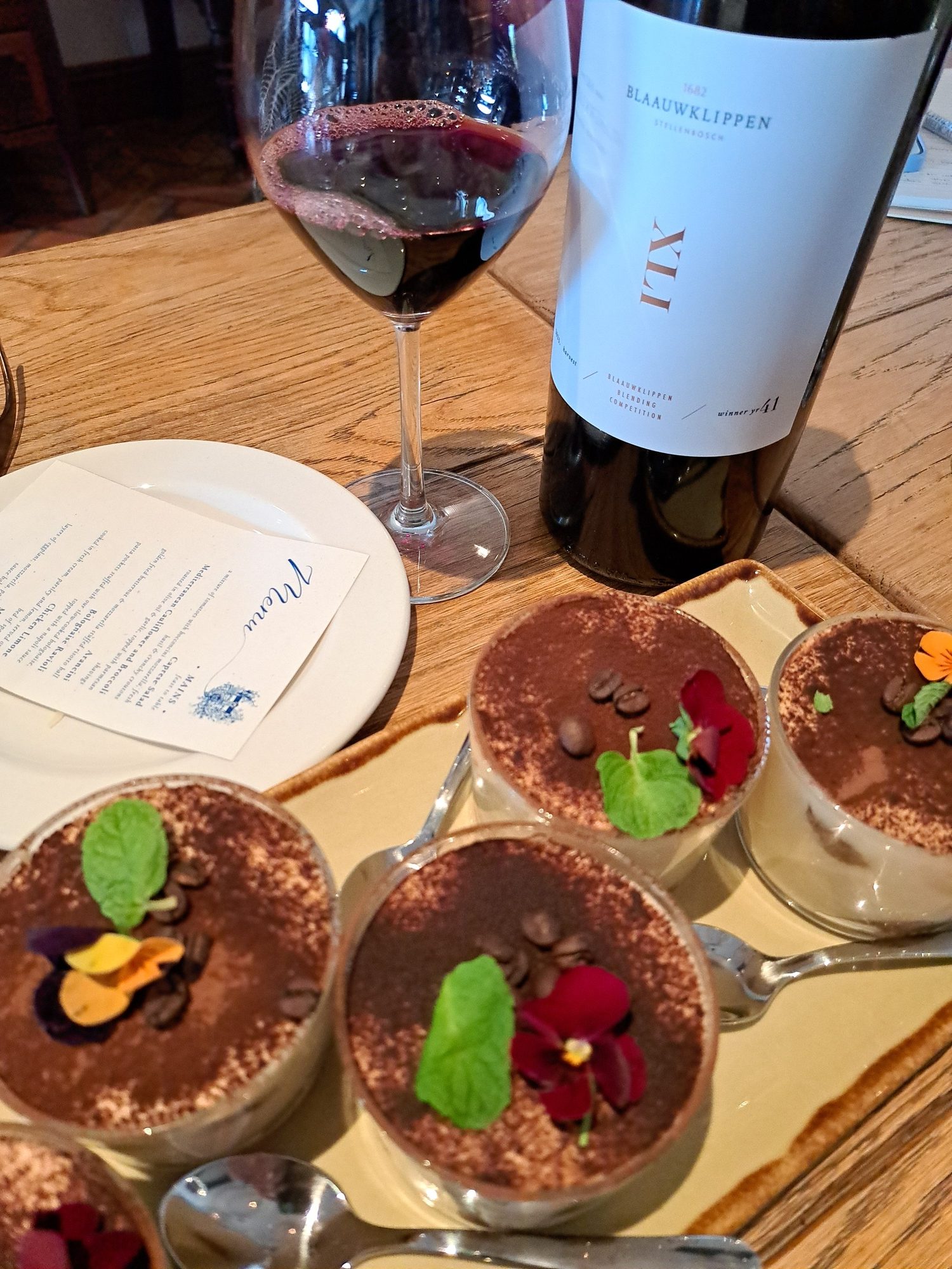 - Die wen-versnit word elke jaar in ‘n Magnum gebottel en is dan aan die publiek te koop. Hier is dit met die maaltyd en nagereg – tradisionele tiramisu – geniet.