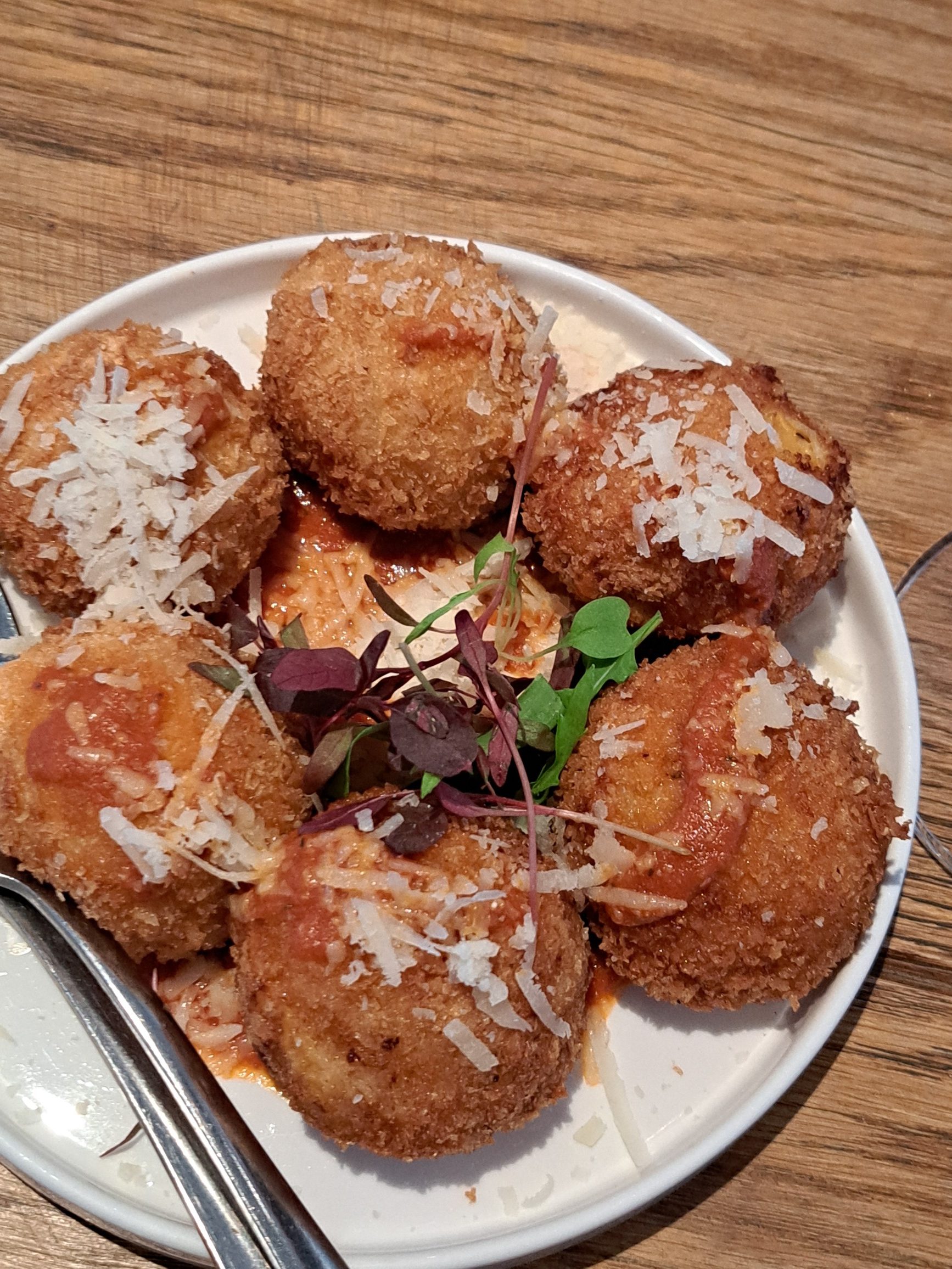 - Die gestopte Arancini-balletjies met botterskorsie en mozzarella met parmesaan besprinkel, was een van die gunstelinge.