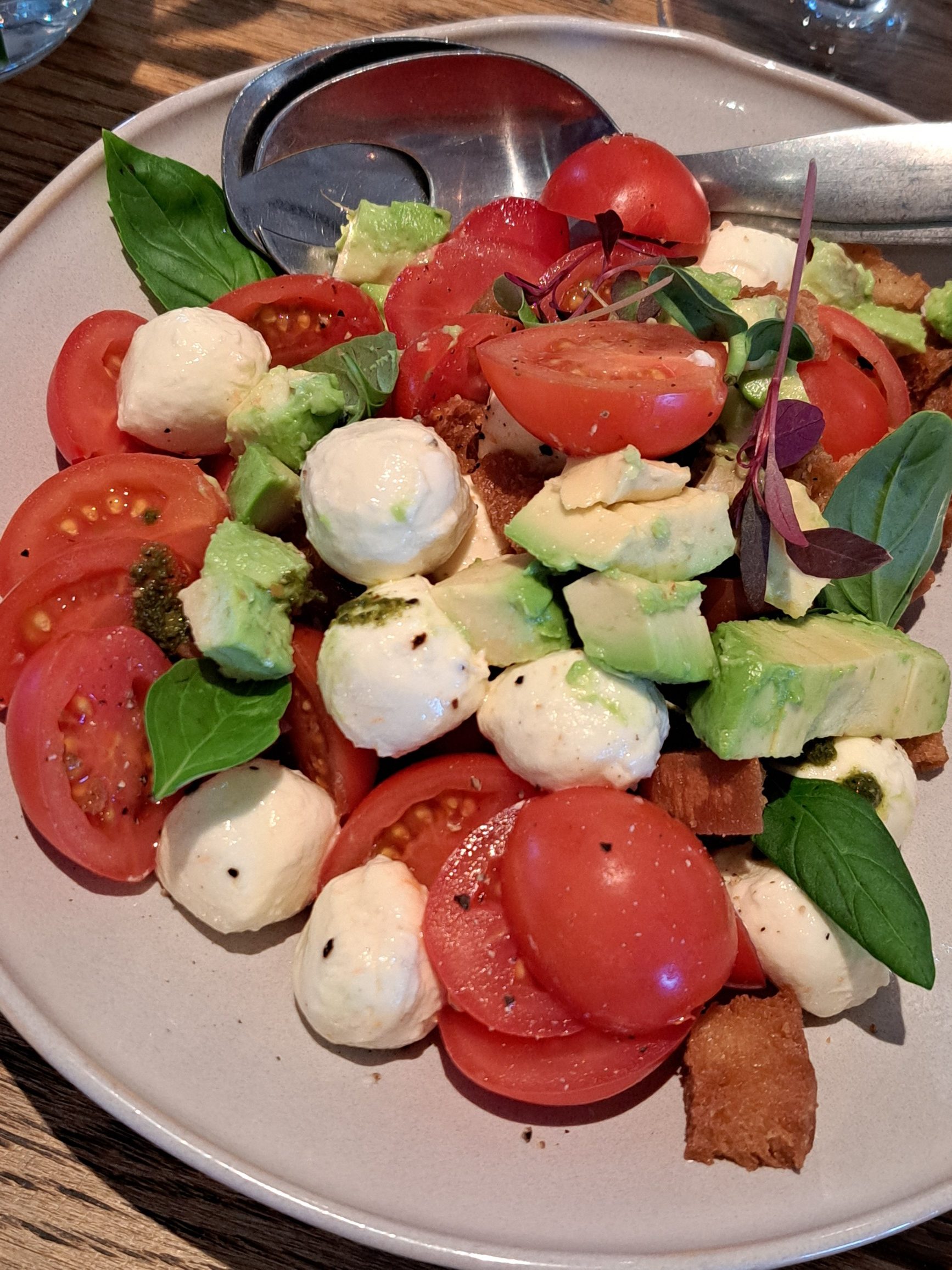 - ‘n Caprese-slaai met vars tamatie, bocconcini mozzarella en basilie, was die perfekte pasmaat vir die vonkelwyn en Chardonnay.